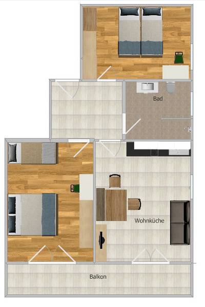 65 m² Ferienwohnung ∙ 2 Schlafzimmer ∙ 5 Gäste