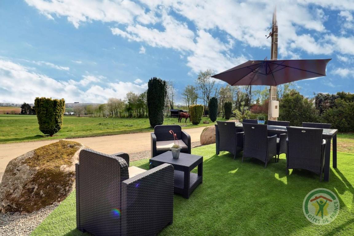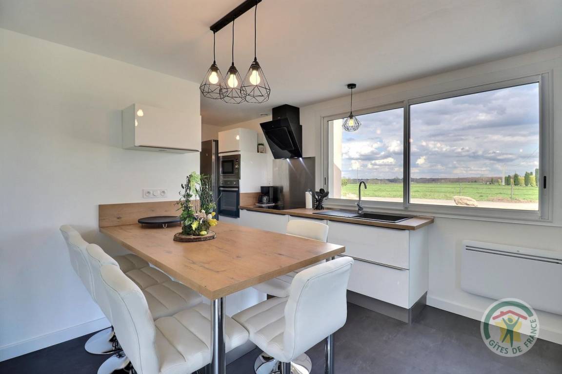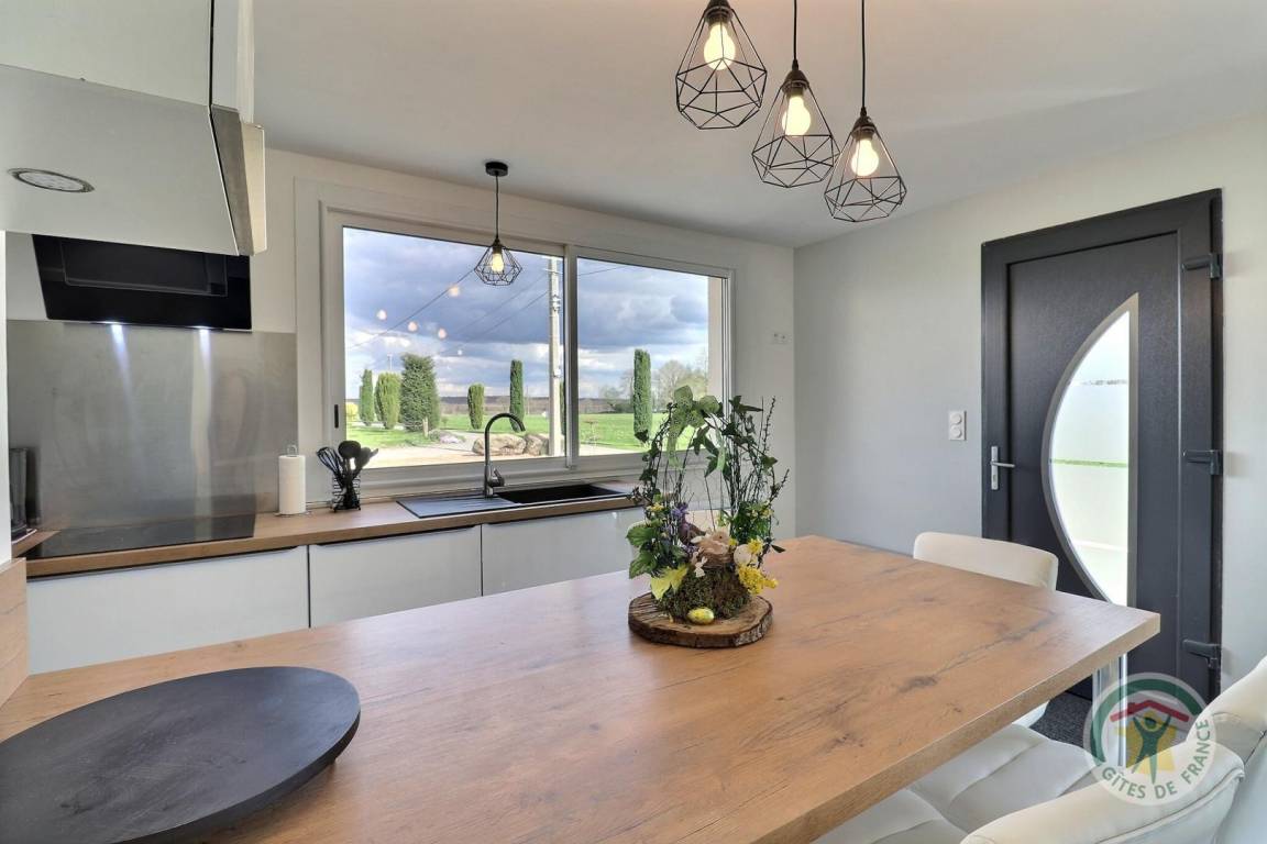 „La maison proposée dispose de tout le confort, située au coeur de la campagne, à proximité de toutes les commerces. L accueil est très chaleureux. Le plus, le lait frais offert par les propriétaires.“