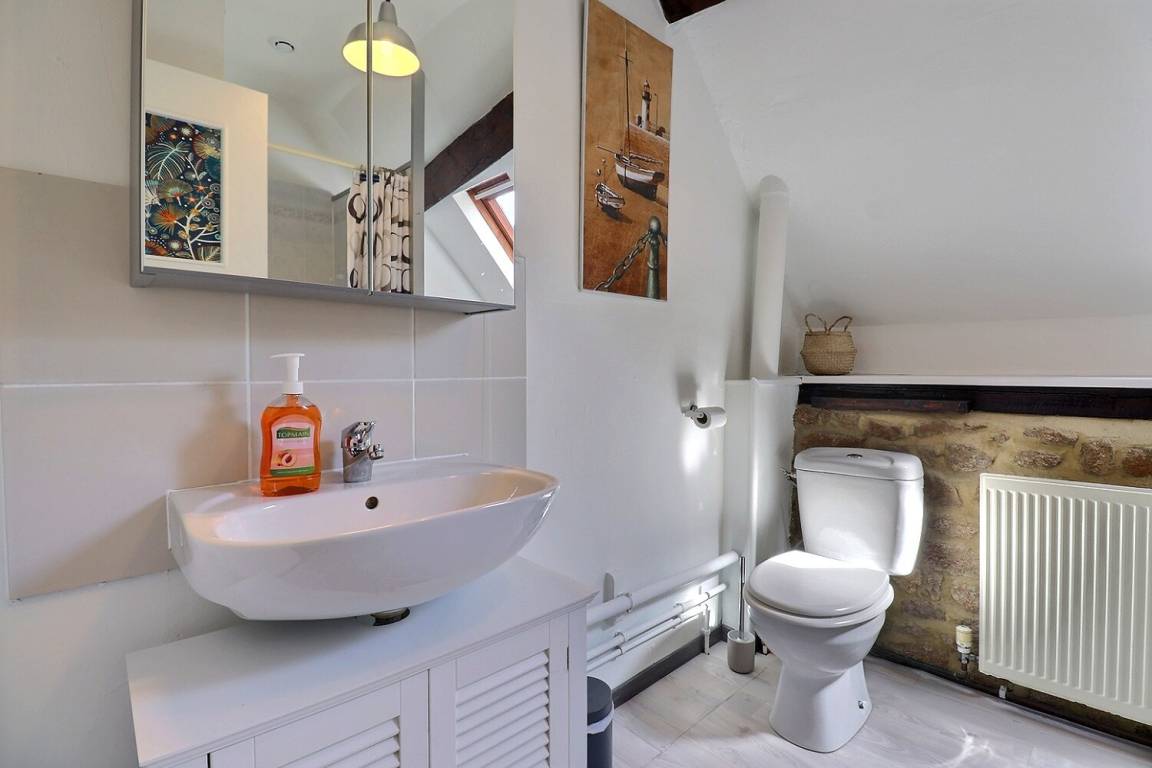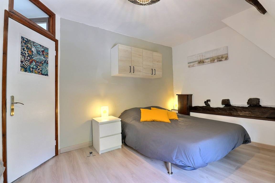 Im Erdgeschoss: ein Wohnzimmer mit Küche, Essbereich und Wohnzimmer. Obergeschoss: ein Schlafzimmer mit einem 90x190-Bett, ein Schlafzimmer mit einem 140x190-Bett, ein Schlafzimmer mit einem 140x190-Bett und einem 90x190-Bett, ein Duschbad mit WC. Parkplatz auf dem Grundstück.