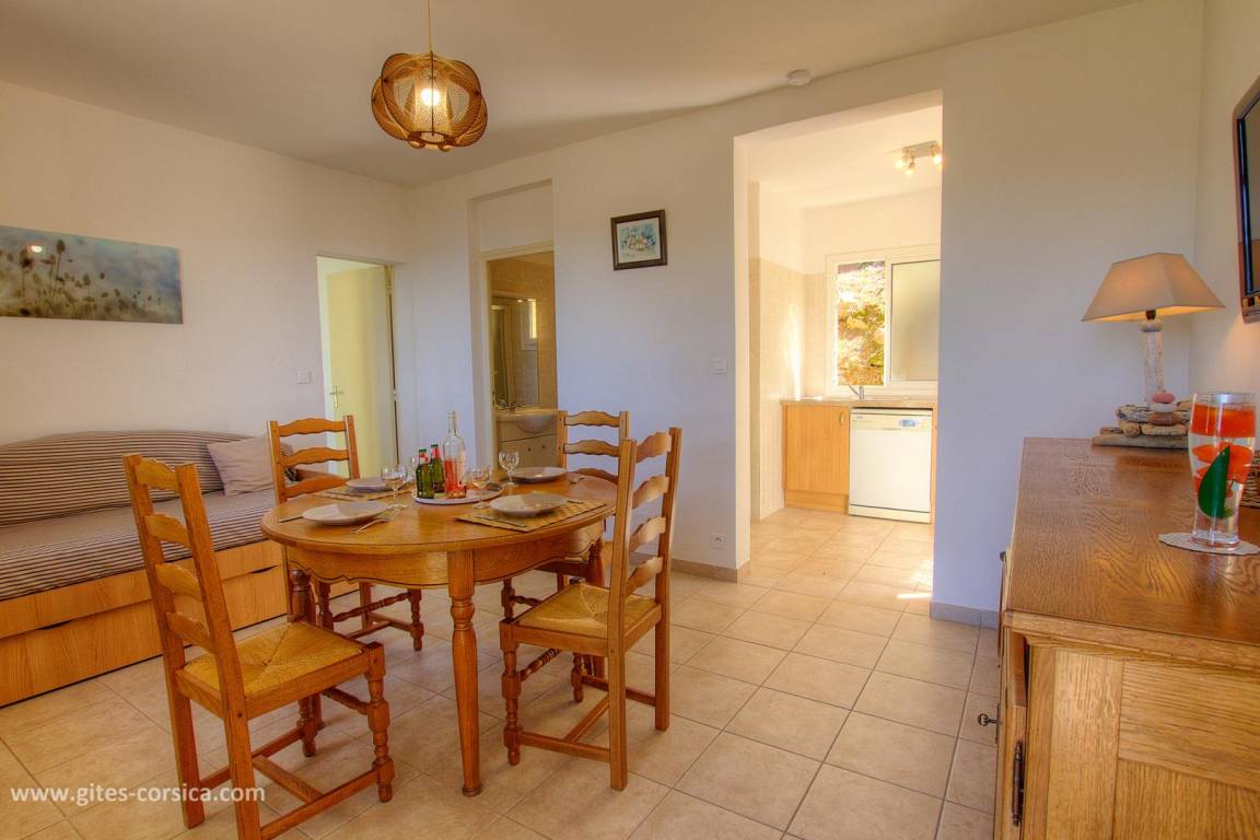„A l'arrivée nous avons été assez déçus de découvrir que le gîte se situe dans une résidence de vacances avec d'autres gîtes exactement du même type: Surprenant de la part de gîte de France. Les photos reflètent néanmoins la réalité: La vue de la terasse est splendide, le mobilier est très vieillot ce qui altère le confort. Photo très bien mises en valeur qui ne montrent aucun voisinage pourtant bien présent (bien que pas bruyant).Les femmes qui s'occupent de la résidence sont adorables (pas rencontré de propriétaire, pas de présent de bienvenue commme souvent avec les propriétaires de gîte de France).La localisation est très bien pour découvrir les environs du Golf de Porto notamment.“