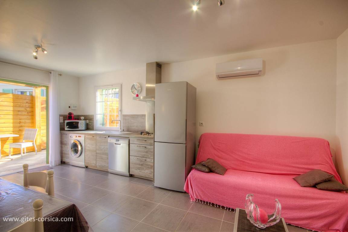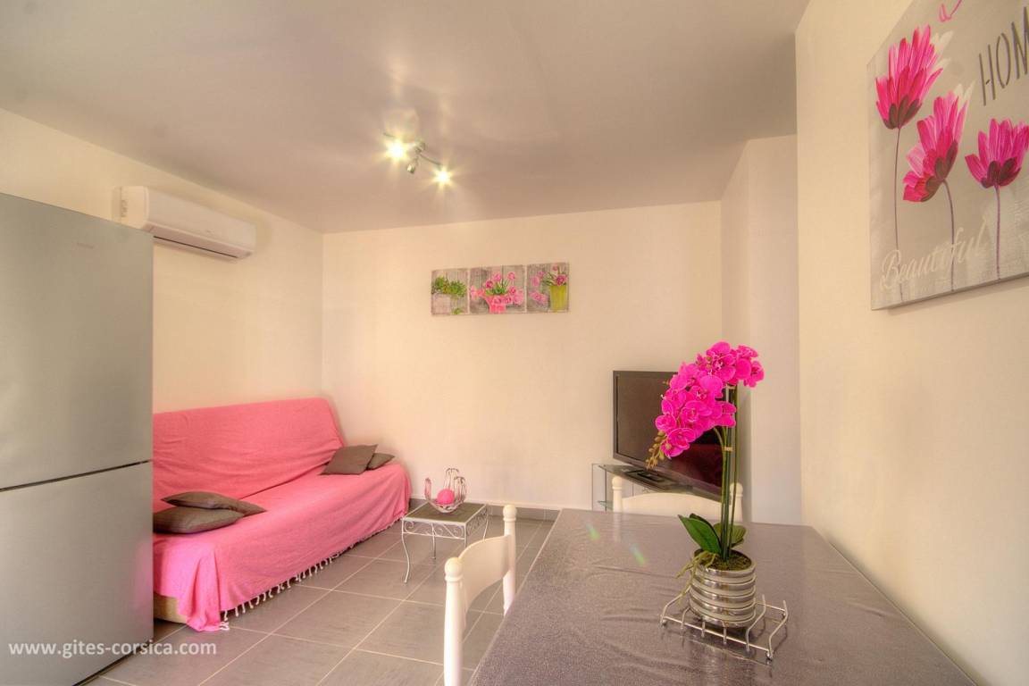 - 1 Schlafzimmer mit 1 Bett 160x200 cm (durch einen Vorhang vom Wohnzimmer getrennt).