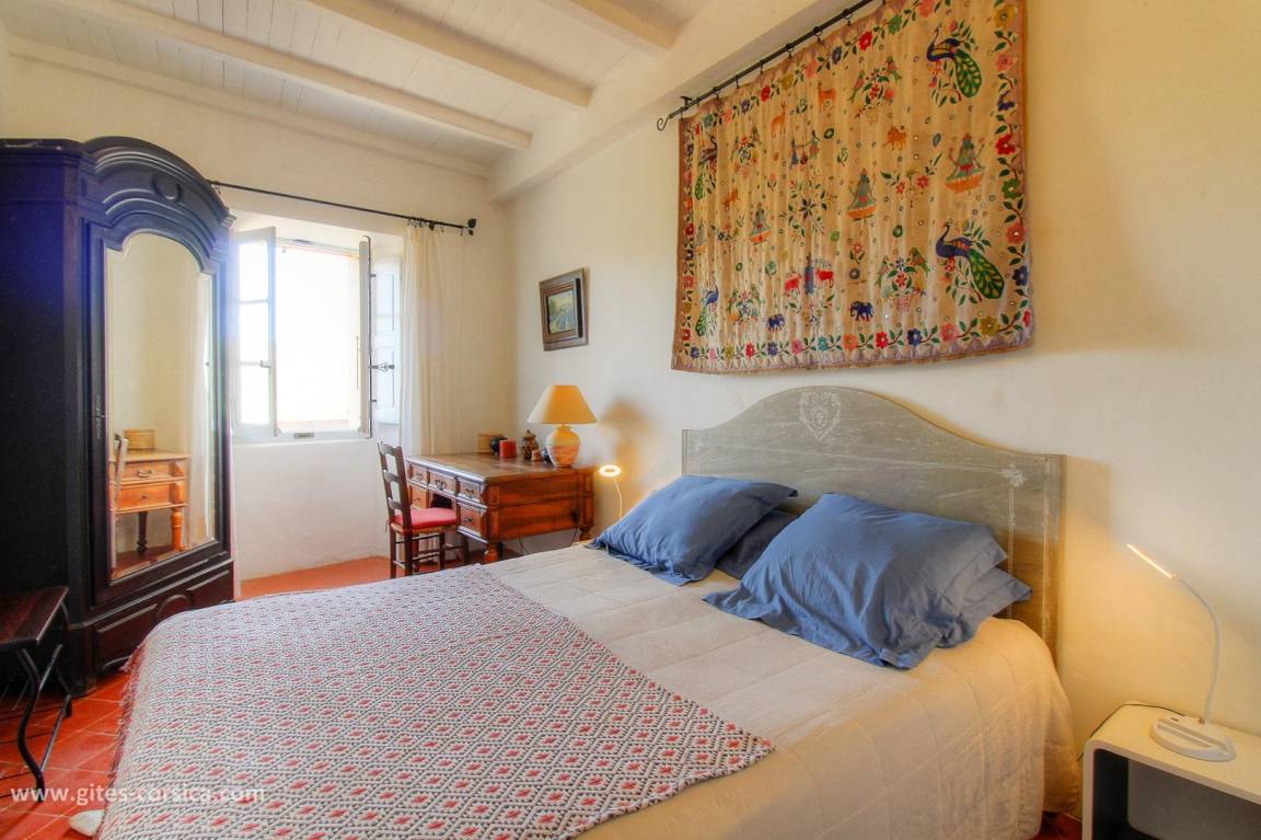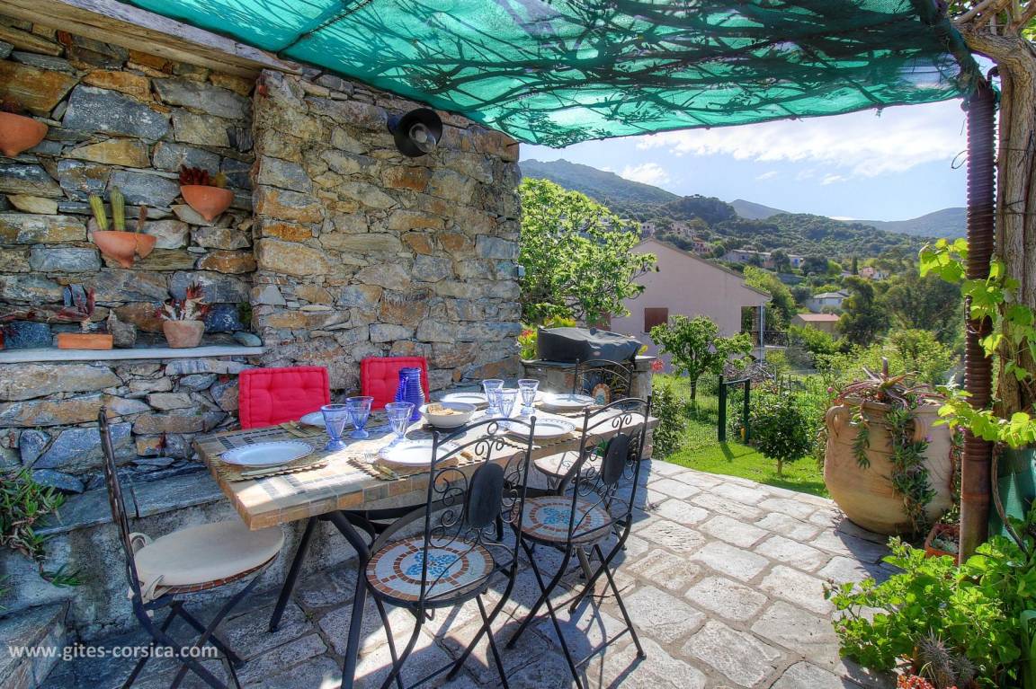 „Un gîte qui a une âme, du charme, du vécu et de l’authenticité, notamment parce que le propriétaire vient y habiter quelques mois par année. Nous avons été accueillis par son responsable local, aimable et sympathique. Le propriétaire a pris soin de s’enquérir de notre satisfaction au téléphone et de faire quelques recommandations de visites. Depuis les deux terrasses, l’une ombragée et l’autre ensoleillée, le point de vue sur les montagnes et hameaux environnants est à couper le souffle. Le sentier patrimonial qui parcourt le secteur passe au pied de la porte. À 75 mètres, vieille et émouvante église San Martinu, où nous avons assisté à un concert d’un excellent groupe de tradition corse. Bref, un beau séjour qui laisse de beaux souvenirs.“