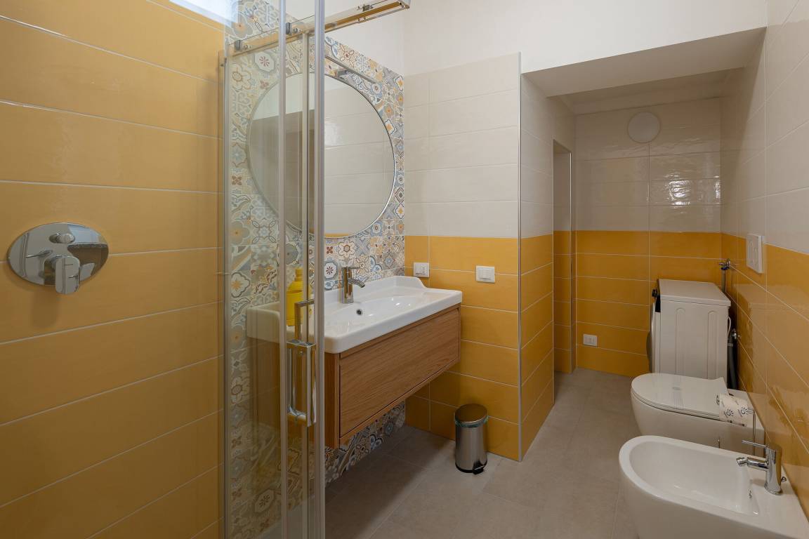 Badezimmer: Waschbecken, WC, Bidet, Dusche, WiFi Internet.