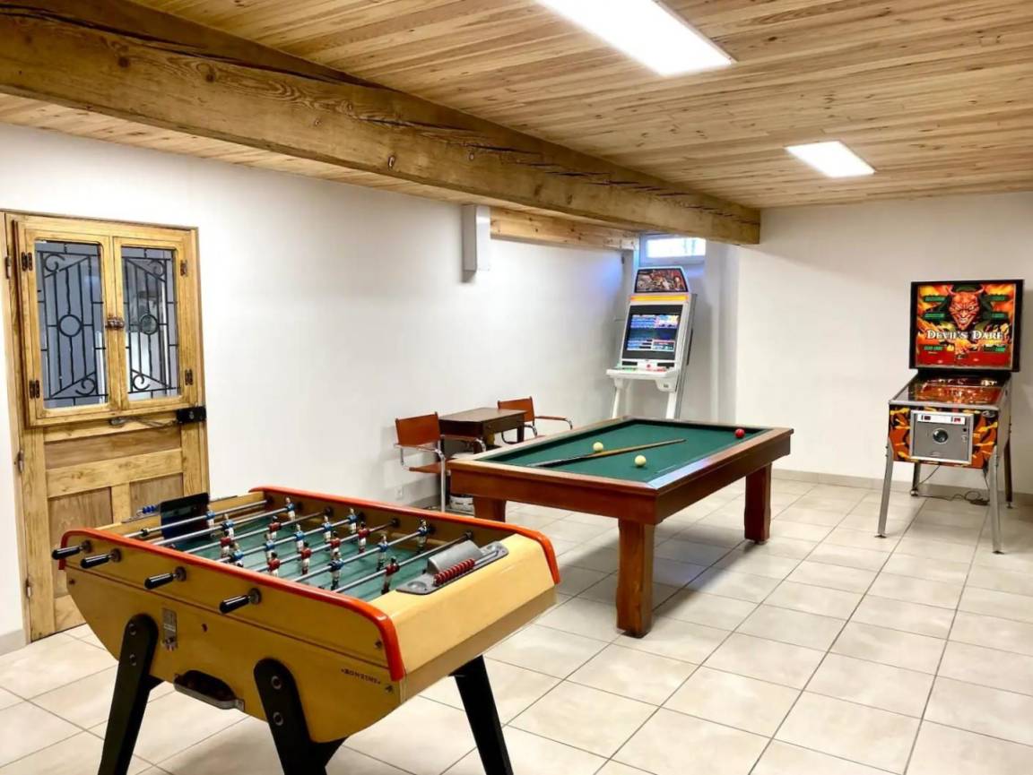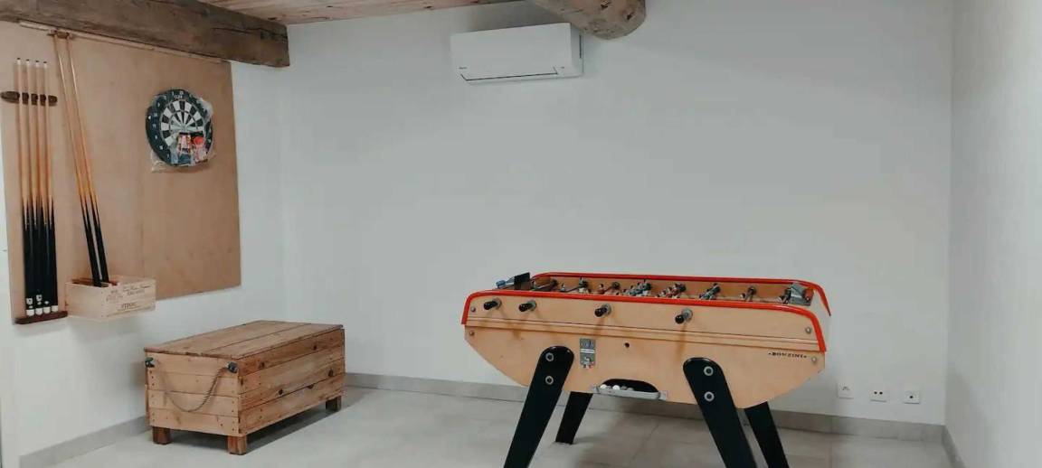 „Belle salle de réception, bien équipée en sono. Par contre quelques soucis en cuisine, 1 seule cuisinière a gaz mal réglé et four inefficace dans le bâtiment principal et la 2eme dans l’autre bâtiment est identique. A noter, la grande salle a 2 baies vitrées dont 1 condamnée car volet roulant inopérant. Pour le chauffage au niveau des chambres nous avons eu froid car le chauffage n’est que dans les couloirs et non dans chaque chambre, de plus pas de couettes mais simplement 2 plaids tres fin par chambre. Le sauna et le jacuzzi était agréable et a bonne température. Attention l'électricité n’est pas comprise et le kw est compté à 0,30 centimes qu’il soit en heure creuse ou pleine. La salle de jeu est agréable, malgré que le baby foot était payant (1 euro la partie)“