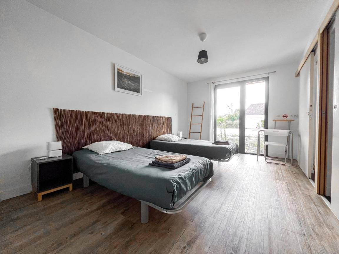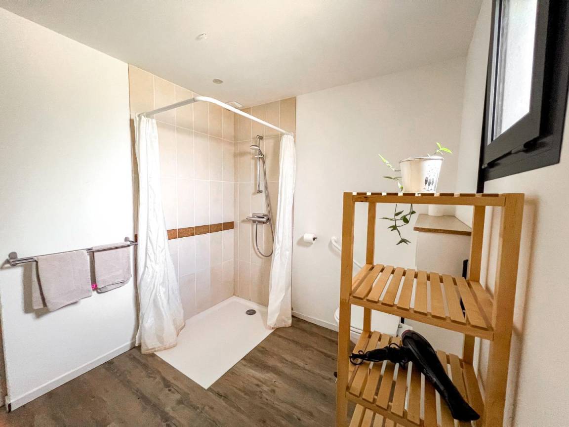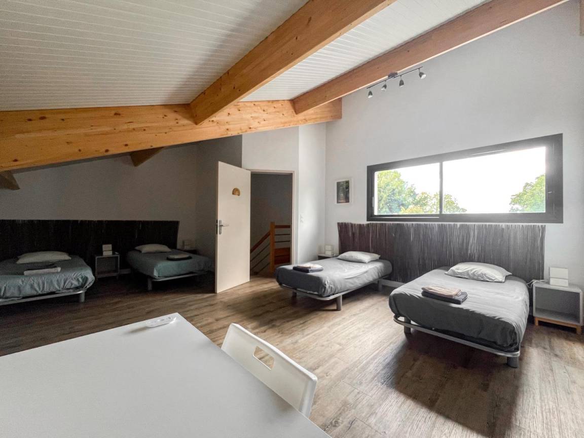 -Obergeschoss: 2 große Schlafzimmer mit jeweils 4 Einzelbetten, eines vom Haus zugänglich, das andere von außen zugänglich und das andere Schlafzimmer. Jedes Schlafzimmer hat ein eigenes Badezimmer mit separatem WC, mit Ausnahme des Schlafzimmers für 3 Personen (mit barrierefreiem Zugang), für das sich das WC im Badezimmer befindet.