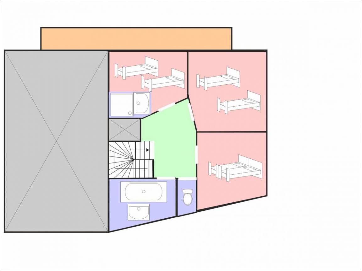Fläche von ungefähr 230 m². Niveau 0 : Schlafzimmer mit Dusche, Doppelbett. Schlafzimmer mit 2 Einzelbetten. separates WC. Waschräume mit Dusche. Niveau 1 : 2 Schlafzimmer mit 2 Einzelbetten. Schlafzimmer mit Dusche, 2 Einzelbetten. separates WC. Badezimmer mit Badewanne. Niveau 2 : Wohnzimmer. Küche mit Kaffeemaschine (Dolce Gusto), Backofen, Geschirrspülmaschine, Mikrowellenherd, 2 Induktionsherdplatten, Kühlschrank. separates WC. Balkon.