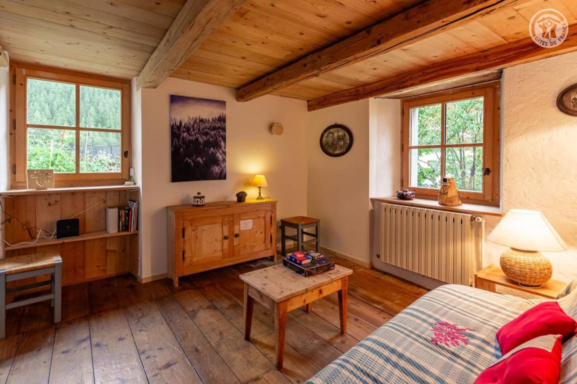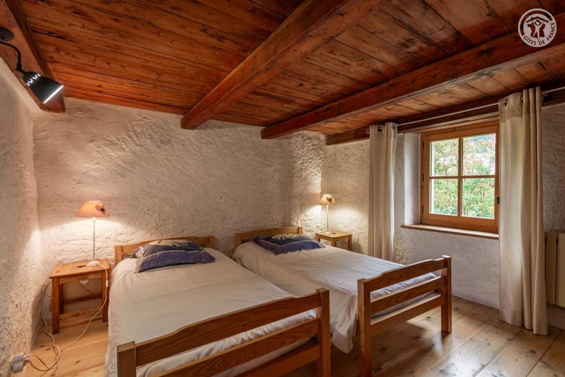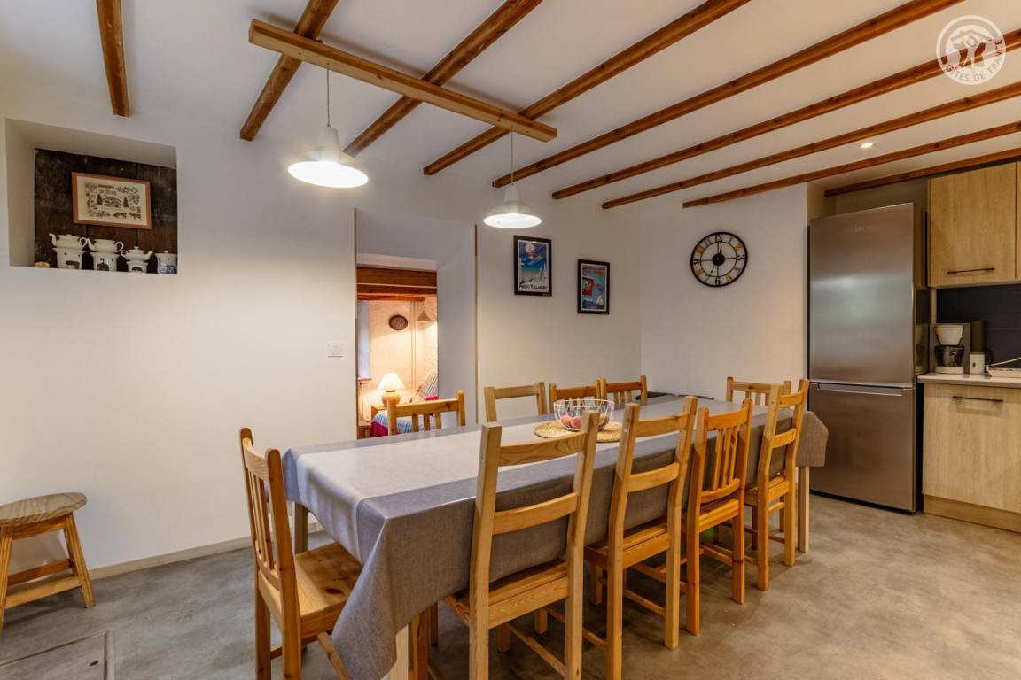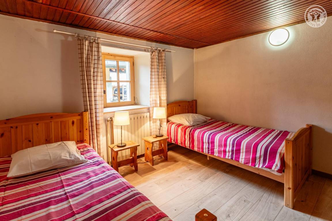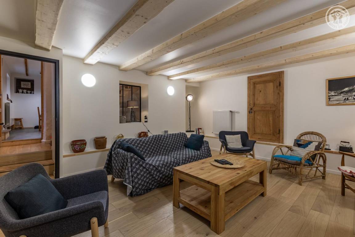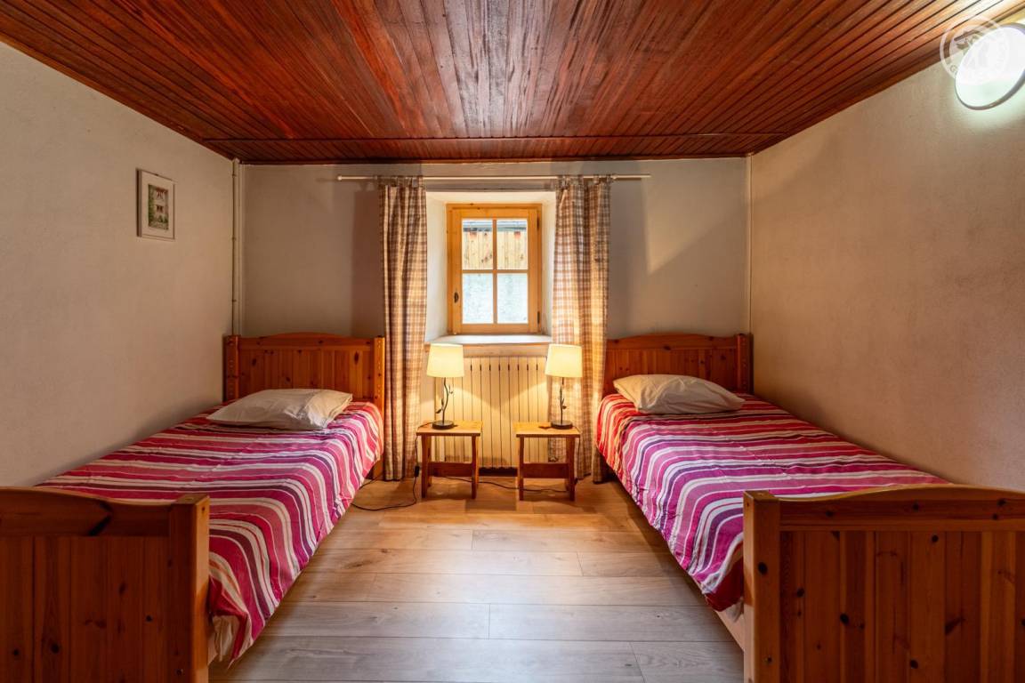 Doppelhaushälfte auf 2 Ebenen, bestehend im Erdgeschoss: Eingangshalle (Zugang im Winter), Wohnküche, 2 Aufenthaltsräume (Sat-TV Astra 2), Badezimmer (Dusche mit WC). 1. Stock: Eingang (Zugang im Sommer), 4 Schlafzimmer (2 Einzelbetten 90x190 cm / 1 Doppelbett 140x190 cm / 1 Doppelbett 160x200 cm / 1 Doppelbett 140x190 cm), Badezimmer (Badewanne und 2 Waschbecken), 5. Schlafzimmer mit angrenzendem kleinen Entspannungsraum in einem anderen Flügel des Hauses (2 Einzelbetten 90x190 cm). Balkon. Grundstück.
