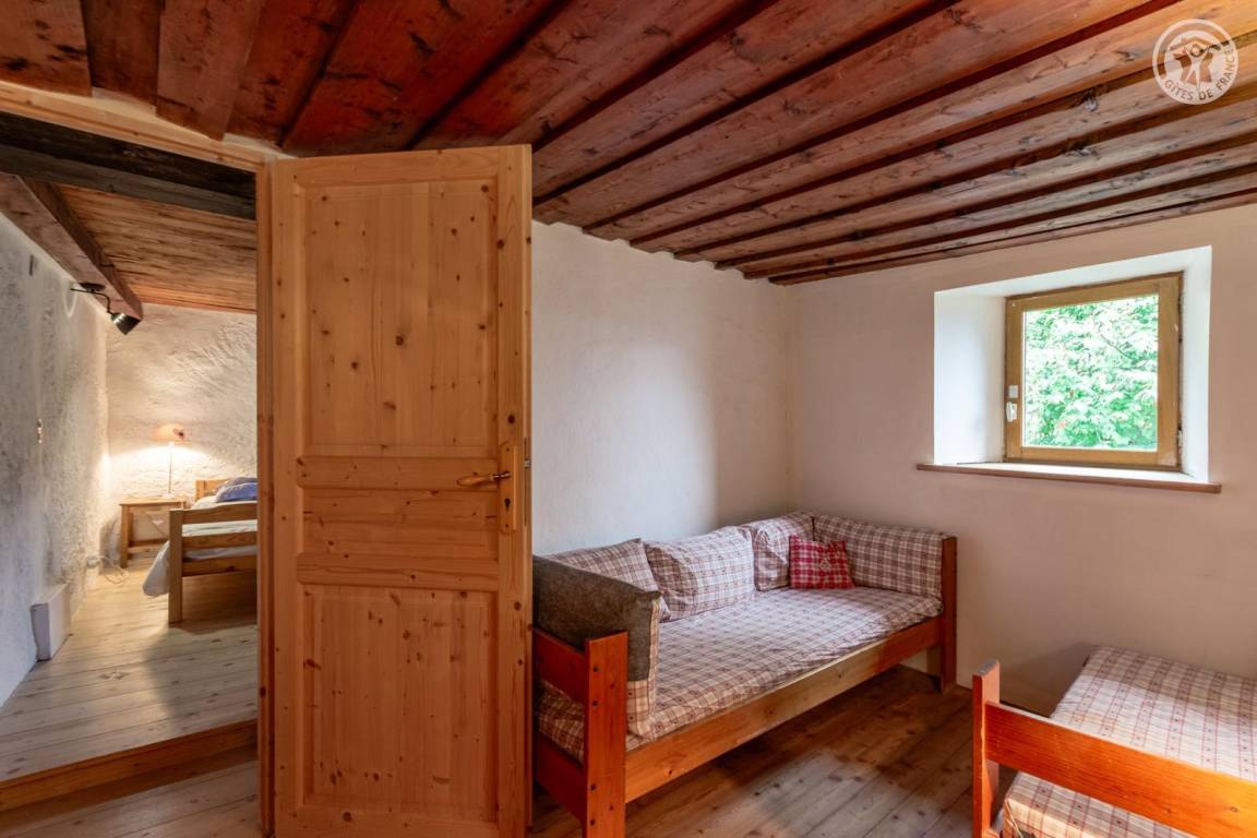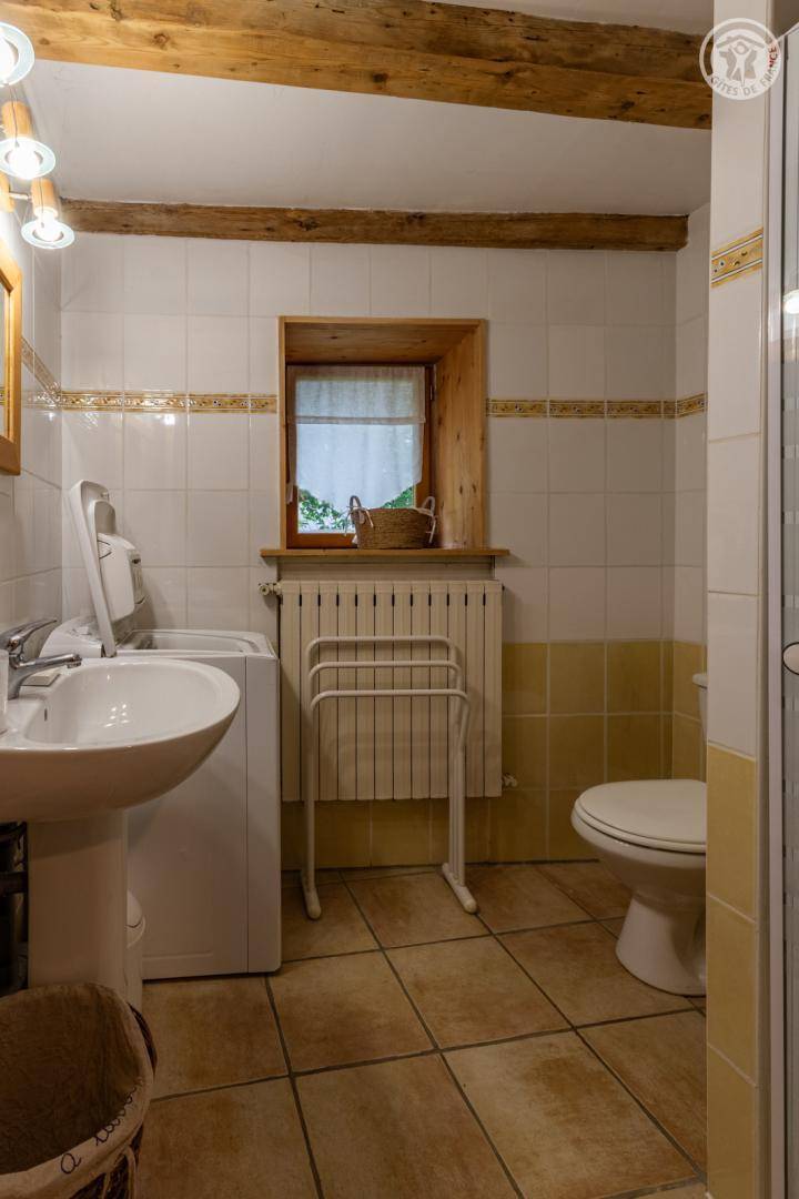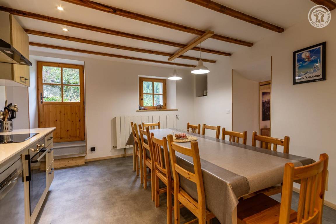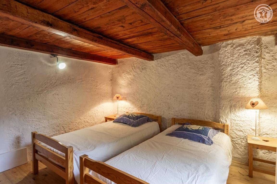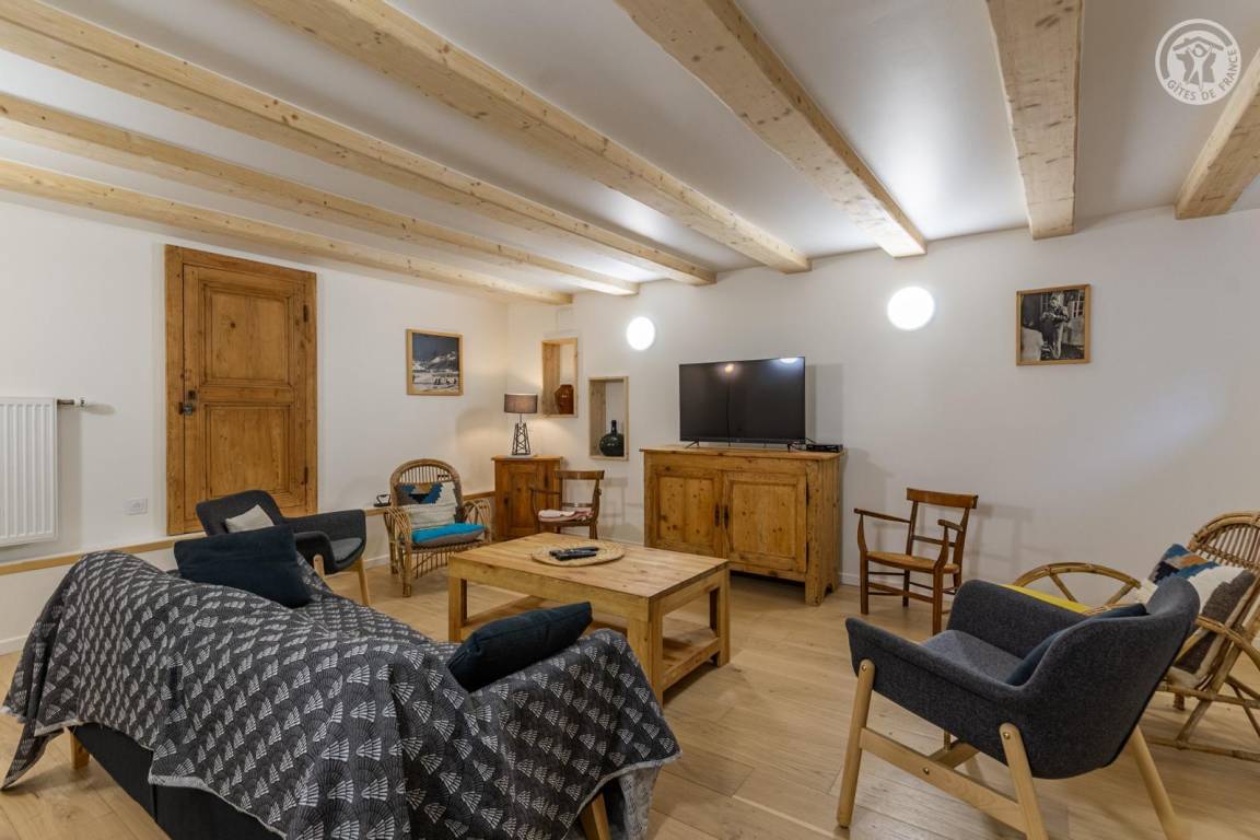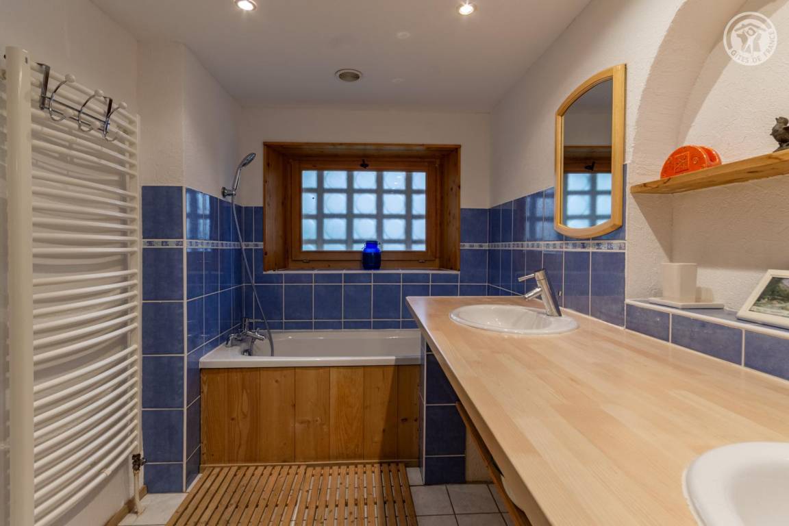 Doppelhaushälfte auf 2 Ebenen, bestehend im Erdgeschoss: Eingangshalle (Zugang im Winter), Wohnküche, 2 Aufenthaltsräume (Sat-TV Astra 2), Badezimmer (Dusche mit WC). 1. Stock: Eingang (Zugang im Sommer), 4 Schlafzimmer (2 Einzelbetten 90x190 cm / 1 Doppelbett 140x190 cm / 1 Doppelbett 160x200 cm / 1 Doppelbett 140x190 cm), Badezimmer (Badewanne und 2 Waschbecken), 5. Schlafzimmer mit angrenzendem kleinen Entspannungsraum in einem anderen Flügel des Hauses (2 Einzelbetten 90x190 cm). Balkon. Grundstück.