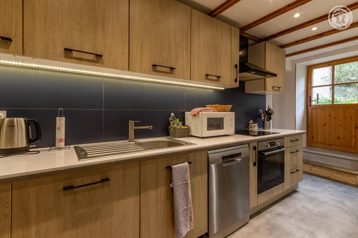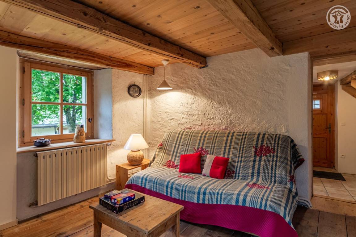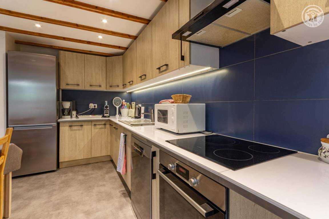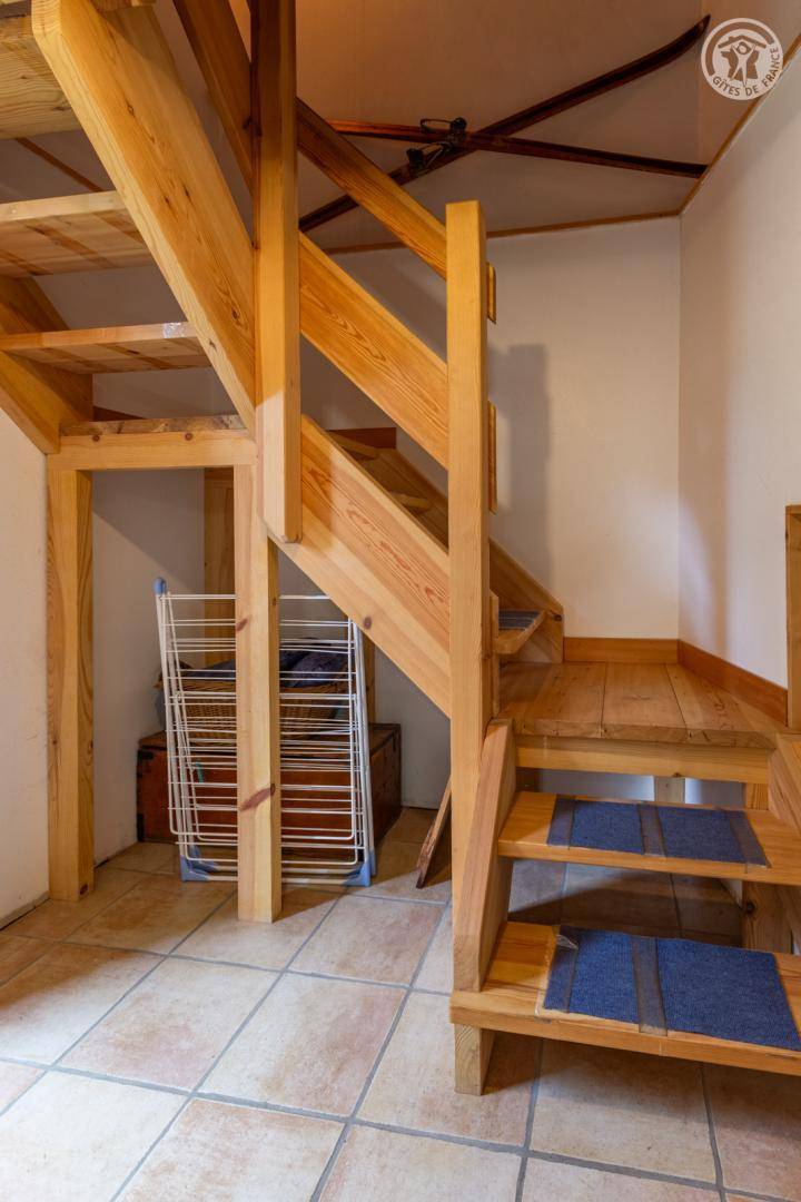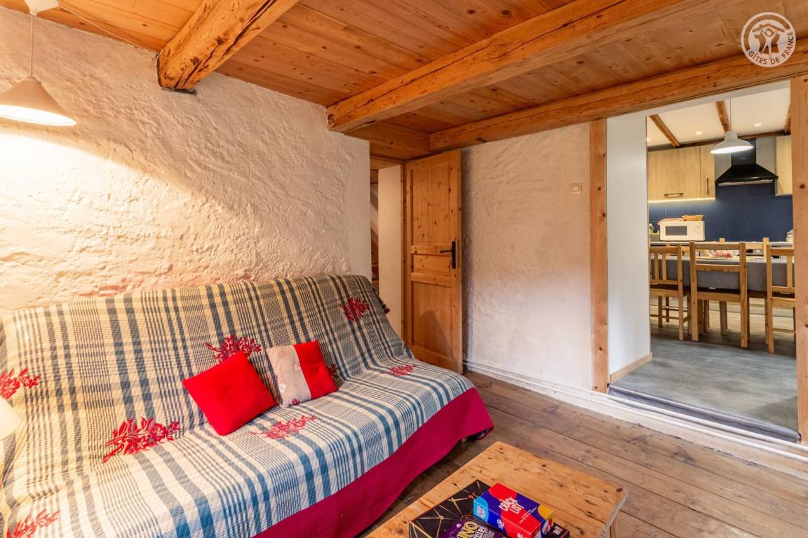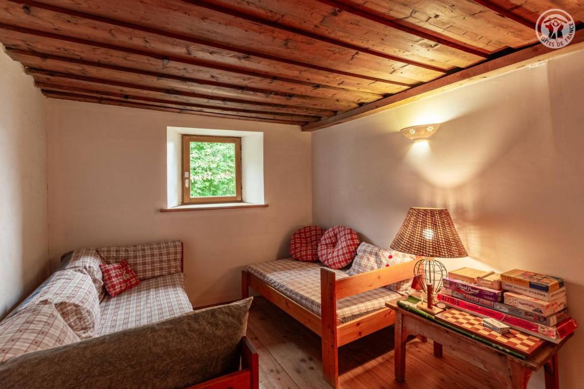 Doppelhaushälfte auf 2 Ebenen, bestehend im Erdgeschoss: Eingangshalle (Zugang im Winter), Wohnküche, 2 Aufenthaltsräume (Sat-TV Astra 2), Badezimmer (Dusche mit WC). 1. Stock: Eingang (Zugang im Sommer), 4 Schlafzimmer (2 Einzelbetten 90x190 cm / 1 Doppelbett 140x190 cm / 1 Doppelbett 160x200 cm / 1 Doppelbett 140x190 cm), Badezimmer (Badewanne und 2 Waschbecken), 5. Schlafzimmer mit angrenzendem kleinen Entspannungsraum in einem anderen Flügel des Hauses (2 Einzelbetten 90x190 cm). Balkon. Grundstück.