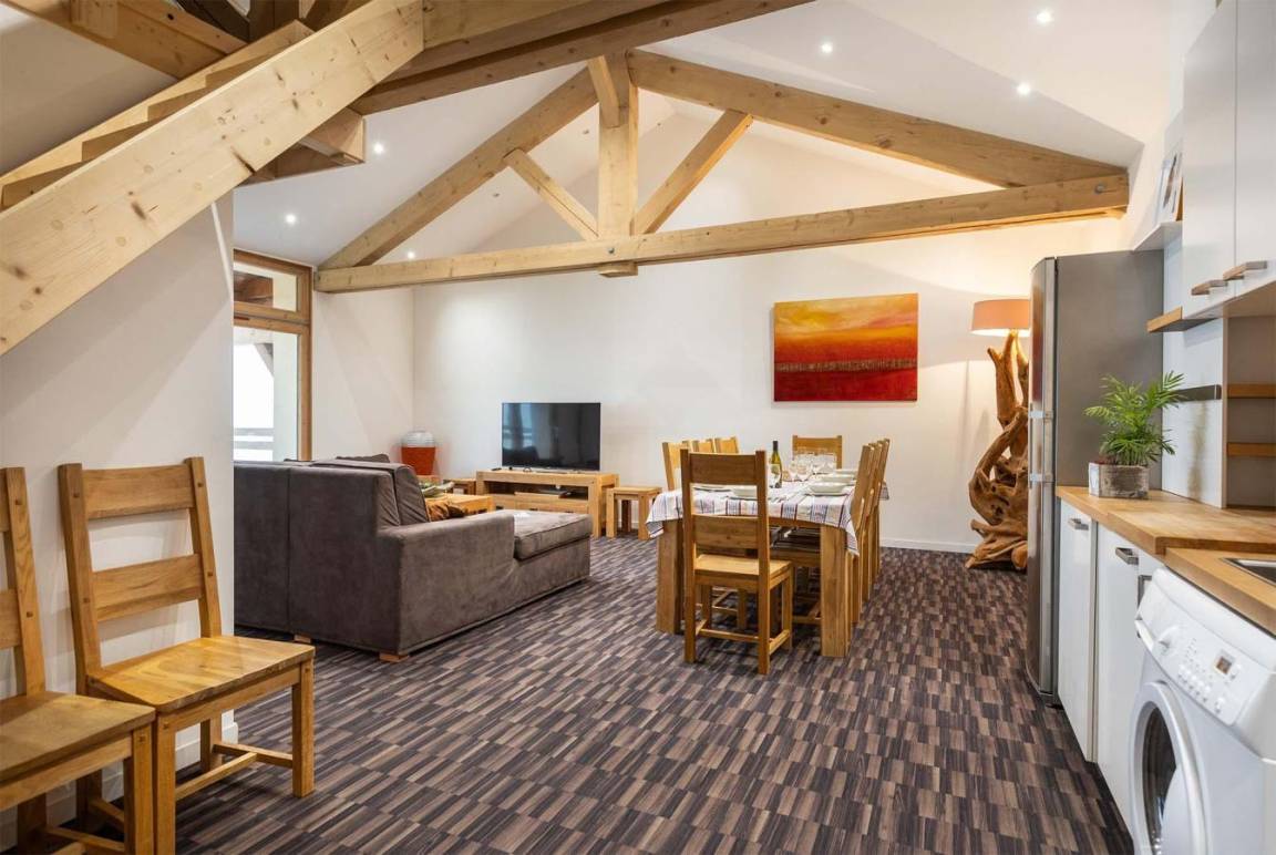 Das Chalet Les Amis befindet sich in Peisey-Nancroix, 1,5 km vom Ferienort Vallandry entfernt, am Tor zum Vanoise-Park und im Herzen des Skigebiets Paradiski (Les Arcs). Paradiski vereint Les Arcs, Peisey Vallandry und La Plagne. Ein privater Shuttleservice bringt Sie ins Dorf oder zu den Langlaufloipen. Das komplett renovierte Chalet Les Amis ist dank seiner geräumigen, außergewöhnlichen Apartments zu einem begehrten, angenehmen und erholsamen Urlaubsort geworden. Mit einer subtilen Mischung aus Moderne und Authentizität verbringen Sie einen angenehmen und erholsamen Aufenthalt mit dem Vanoise-Massiv als Kulisse. Fläche von ungefähr 144 m². 3te Etage. Blick tal und Berg. Niveau 0 : Wohnzimmer mit Sofa, Klappschlafcouch (160*200). Schlafzimmer mit Doppelbett (160*200), Waschraum, WC. Zwischengeschoss mit Klappschlafcouch (140*200). Küche mit Wasserkocher, Kaffeemaschine (à filtre et nespresso), Backofen, Toaster, Geschirrspülmaschine, Mikrowellenherd, 2 Induktionsherdplatten, Kühl-Gefrier-Kombination. Terrasse. Waschmaschine, Bügelbrett und Bügeleisen. Niveau 1 : 2 Schlafzimmer mit Doppelbett (160*200), Waschraum, WC. Schlafzimmer mit 4 Stockbetten (90*200), Waschraum, WC. Die oberen Betten sind nicht für Kinder unter 6 Jahren geeignet.