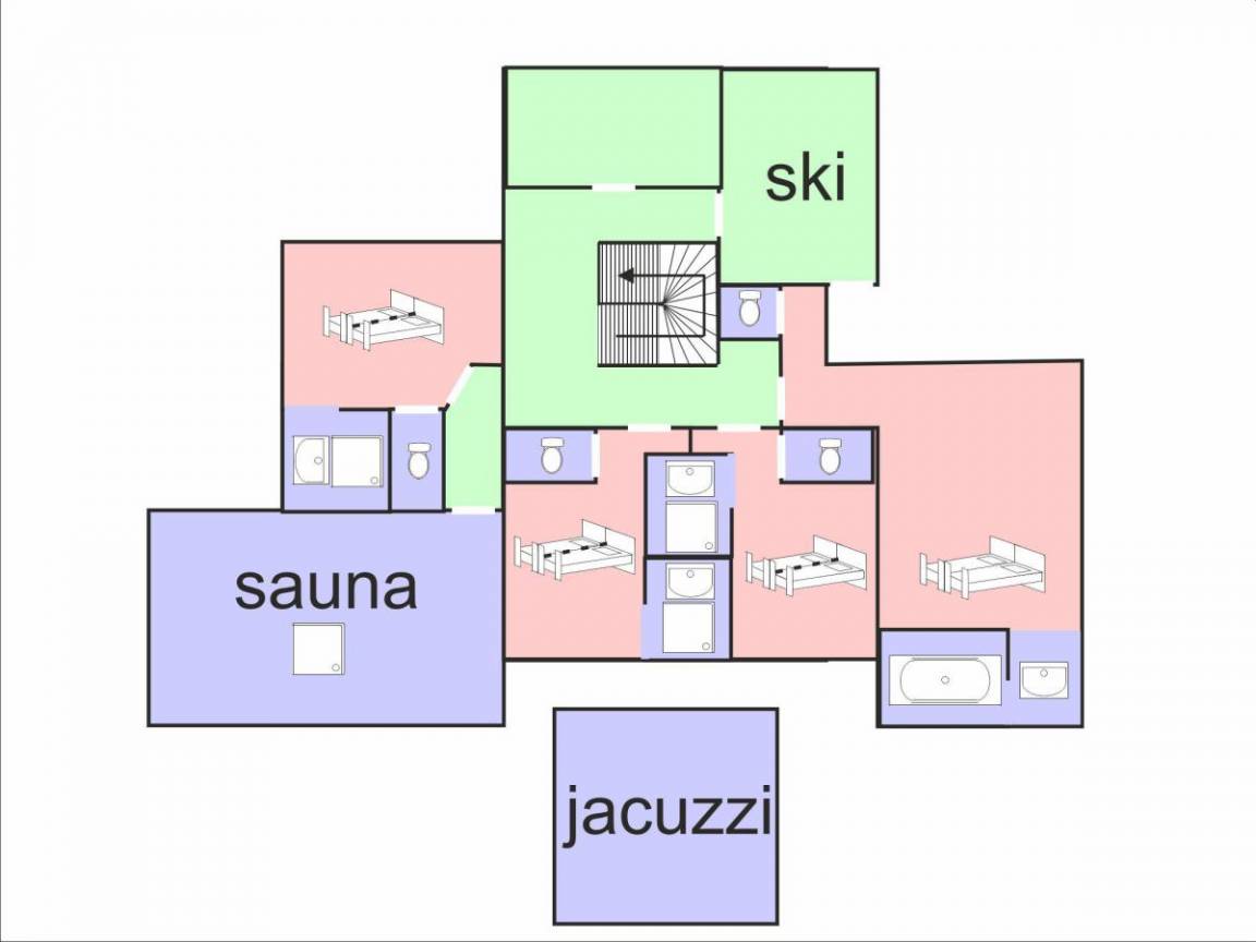 Fläche von ungefähr 330 m². Blick tal und Berg. Niveau 0 : 3 Schlafzimmer mit Dusche, 2 zwei Einzelbetten (90). Schlafzimmer mit Eckbadewanne, Doppelbett (160*200). Küche mit Fonduegerät, Wasserkocher, 2 Kaffeemaschinen (à filtres et Nespresso), Küchenherd (5 feux), Backofen, Toaster, Geschirrspülmaschine, Mikrowellenherd, Mixer, 2 Kühlschränke. 4 separate WCs. Garten. Sauna mit Dusche, Handtuchtrockner. Niveau 1 : Wohnzimmer mit Sofa, Schwedenofen. Schlafzimmer mit 2 zwei Einzelbetten (90). separates WC. Badezimmer mit Dusche, Waschmaschine, Handtuchtrockner. Niveau 2 : Schlafzimmer mit Balkon, 3 Betten (90), Dusche. Schlafzimmer mit Balkon, Dusche, 2 zwei Einzelbetten (90). 2 separate WCs.