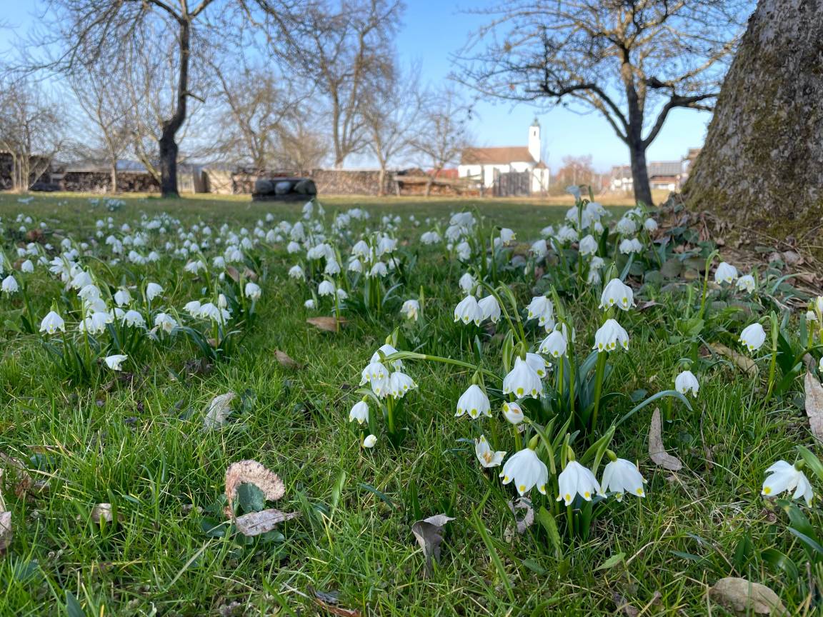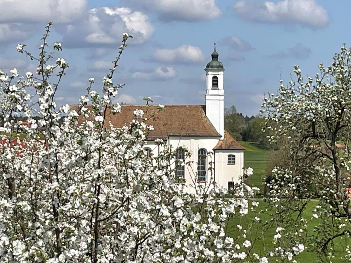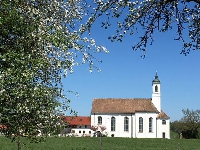 Die große Fensterfront mit Balkon bietet einen wunderbaren Ausblick auf die umliegenden Wiesen und die Wallfahrtskirche Maria Aich. Peißenberg ist ein idealer Ausgangspunkt zur Erkundung der Sehenswürdigkeiten im Pfaffenwinkel und Fünf-Seenland. Städtetouren in die Landeshauptstadt München sind durch die gute Zuganbindung