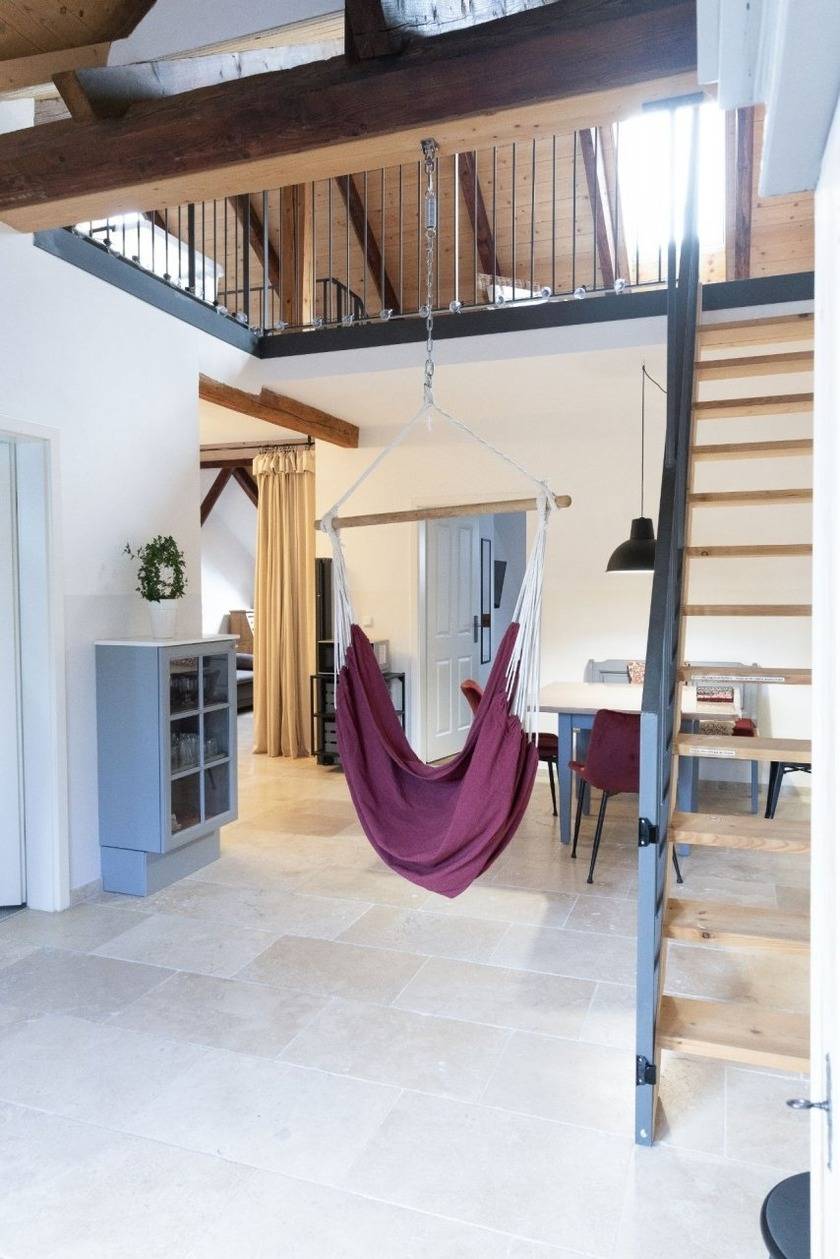 - Schlafplatz auf der offenen Galerie mit besonderer Atmosphäre