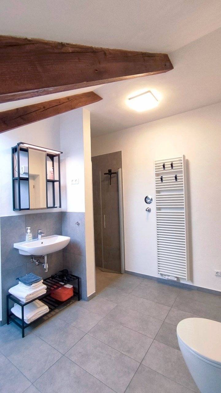 - Badezimmer mit geräumiger Dusche