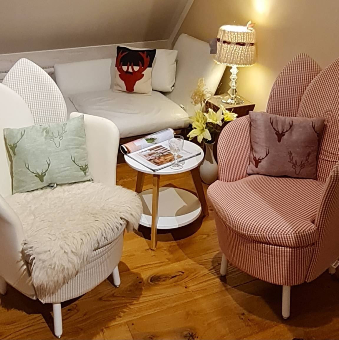 Zwei Designer Sessel im Wohnzimmer runden dies ab.