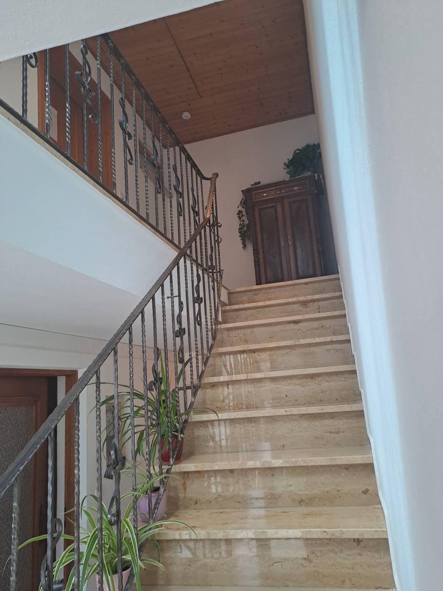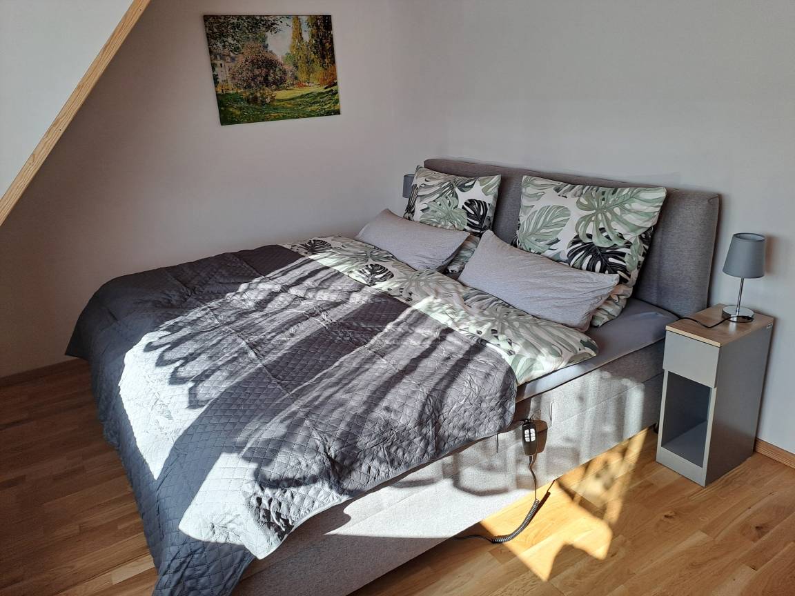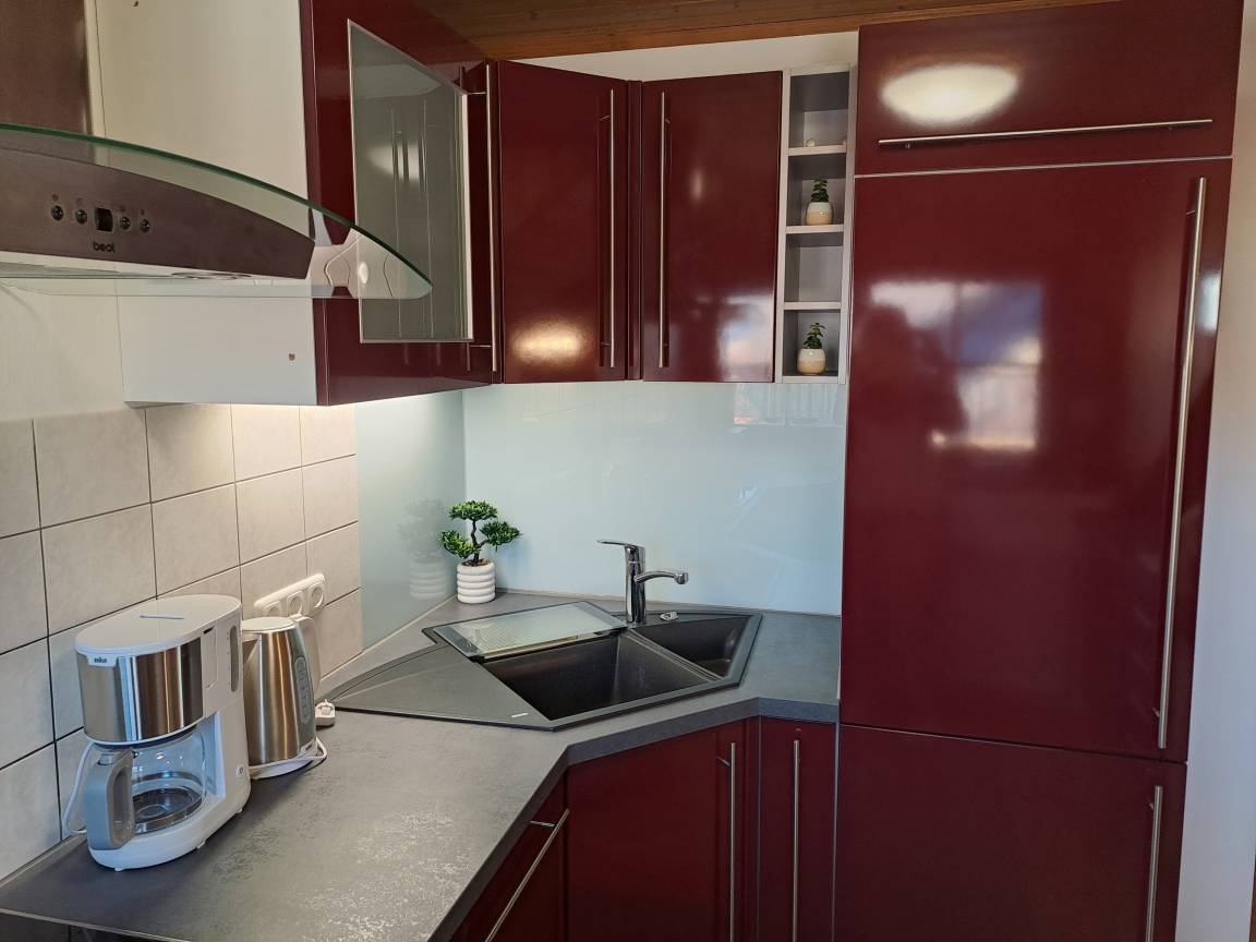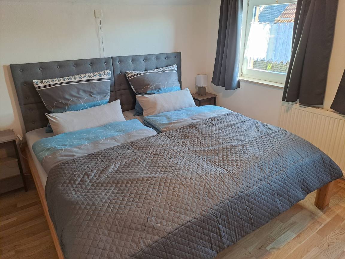 Genießen Sie ungestört Ihre Privatsphäre in der Ferienwohnung im 1. Stock unseres Hauses. Zugang über einen separaten Eingang. Zur Wohnung gehört ab Juni 2025 ein eigener Teil im Garten mit Terrasse, Sichtschutz, gemütlicher Sitzgruppe und großem Sonnenschirm. Die behagliche 3-Zimmer-Wohnung bietet eine große Wohnküche mit stabilem Keramiktisch und vier bequemen Drehstühlen. Die Küche ist mit allen nötigen Küchengeräten ausgestattet. Das offene Wohnzimmer mit Flachbild-TV und 2 Sofas lädt zum Relaxen ein. Sie werden sich dort sofort wohlfühlen. Alle Fußböden bestehen aus Echtholz-Eichenparkett. Beide Schlafzimmer sind mit großen, bequemen Doppelbetten ausgestattet und verdunkelbar. Das WC ist separat von der Dusche untergebracht.