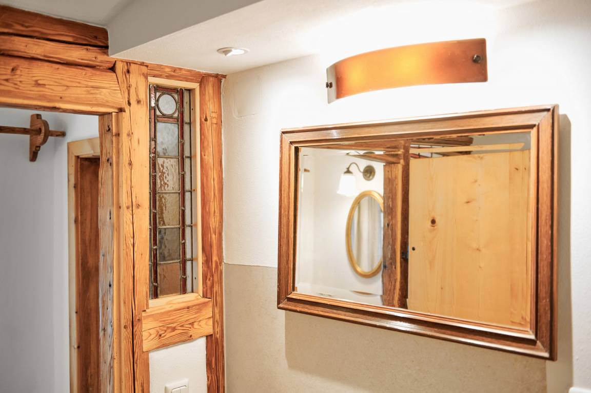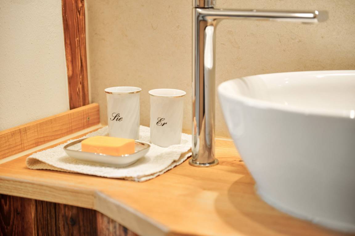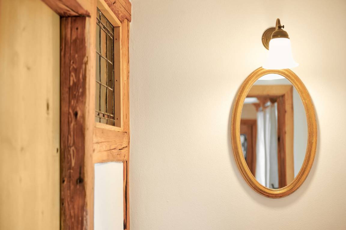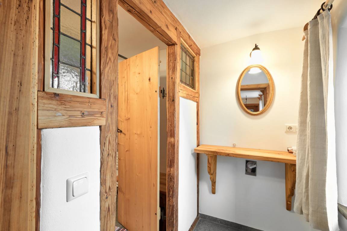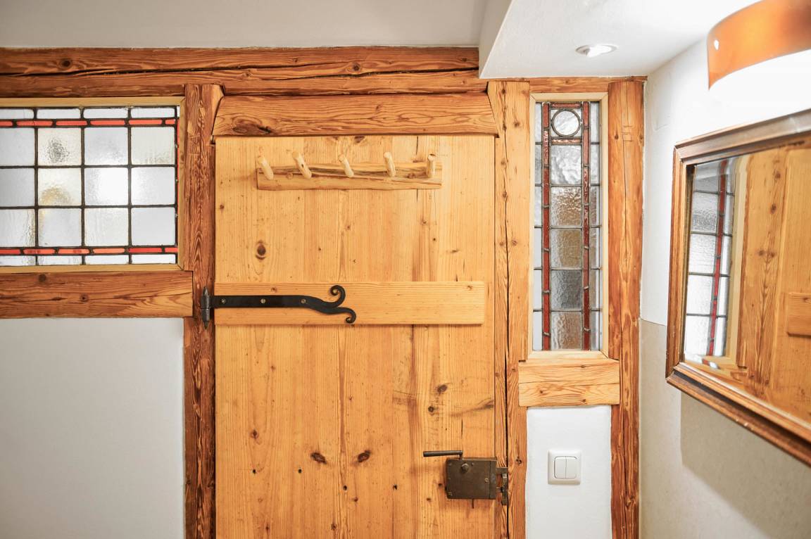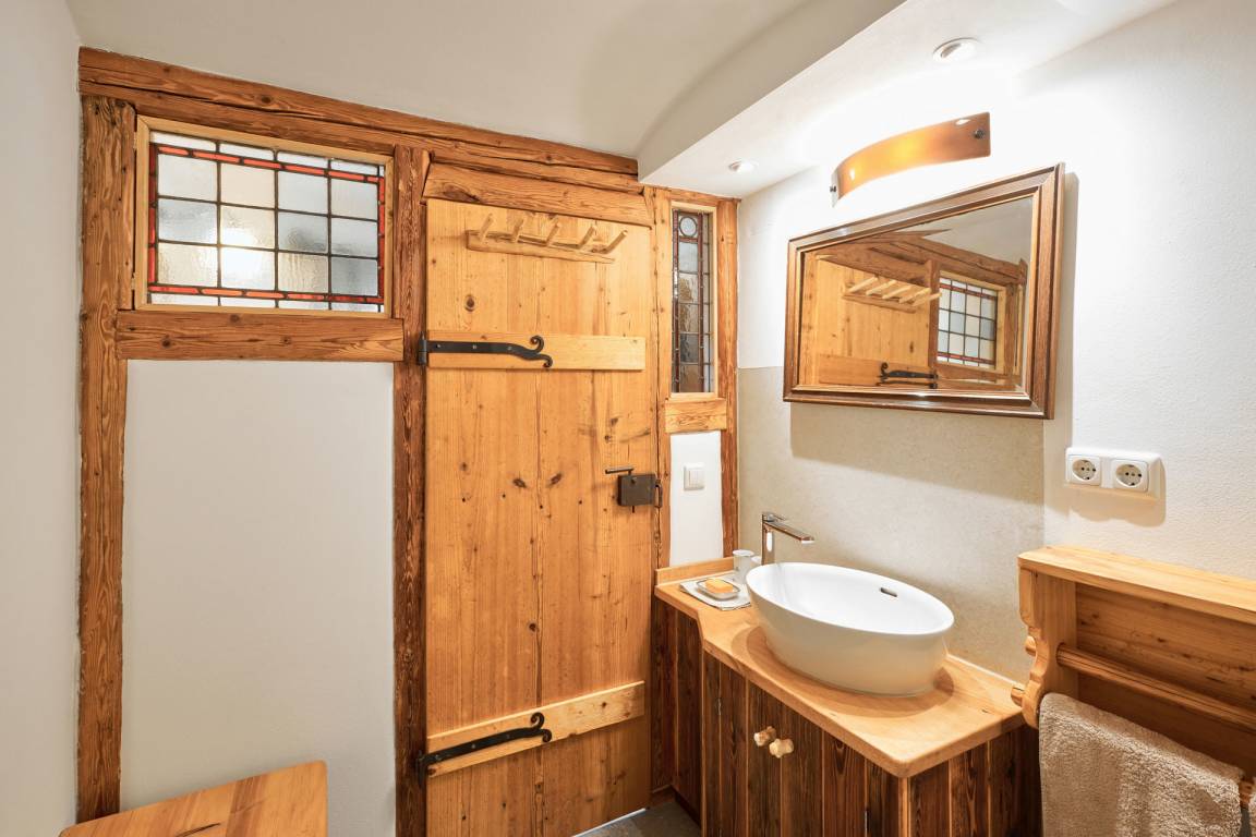 Die Wohnung "Beim Sattler" verfügt im Erdgeschoß über einen Wohn-/Essraum mit komplett eingerichteter Küchenzeile. Das Bad ist mit Dusche/WC, Waschtisch und Fön ausgestattet. Über die Diele mit Garderobe und Schuhbank erreicht man den 1. Stock. Dort befindet sich das Schlafzimmer mit großem Doppelbett ( 2x2 Meter/hochwertige Matratzen), Kleiderschrank und großer Kommode. Bei Bedarf kann ein Kindergitterbett für ein Kleinkind gemietet werden. Zwischen Schlafzimmer und Treppe wurde eine offene Loggia mit Fernseher und Leseraum eingerichtet. Dort steht eine Schlafcouch (1,25 x 2 m) für eine weitere Person zur Verfügung. Die gesamte Ferienwohnung ist mit geölten Holzböden ausgestattet (Ausnahme im Bad), liebevolle Details sorgen für eine "heimelige" Atmosphäre. Direkt vor dem eigenen Eingang liegt die Ostterrasse mit Sitzgelegenheit und Grill, ein kleiner Garten sowie der KFZ- Stellplatz. Für Fahrräder oder Ski ist ein abschließbarer Abstellraum vorhanden. Achtung - für kleine Kinder besteht eine erhöhte Aufsichtspflicht, da sich direkt nebenan unser Teich befindet.