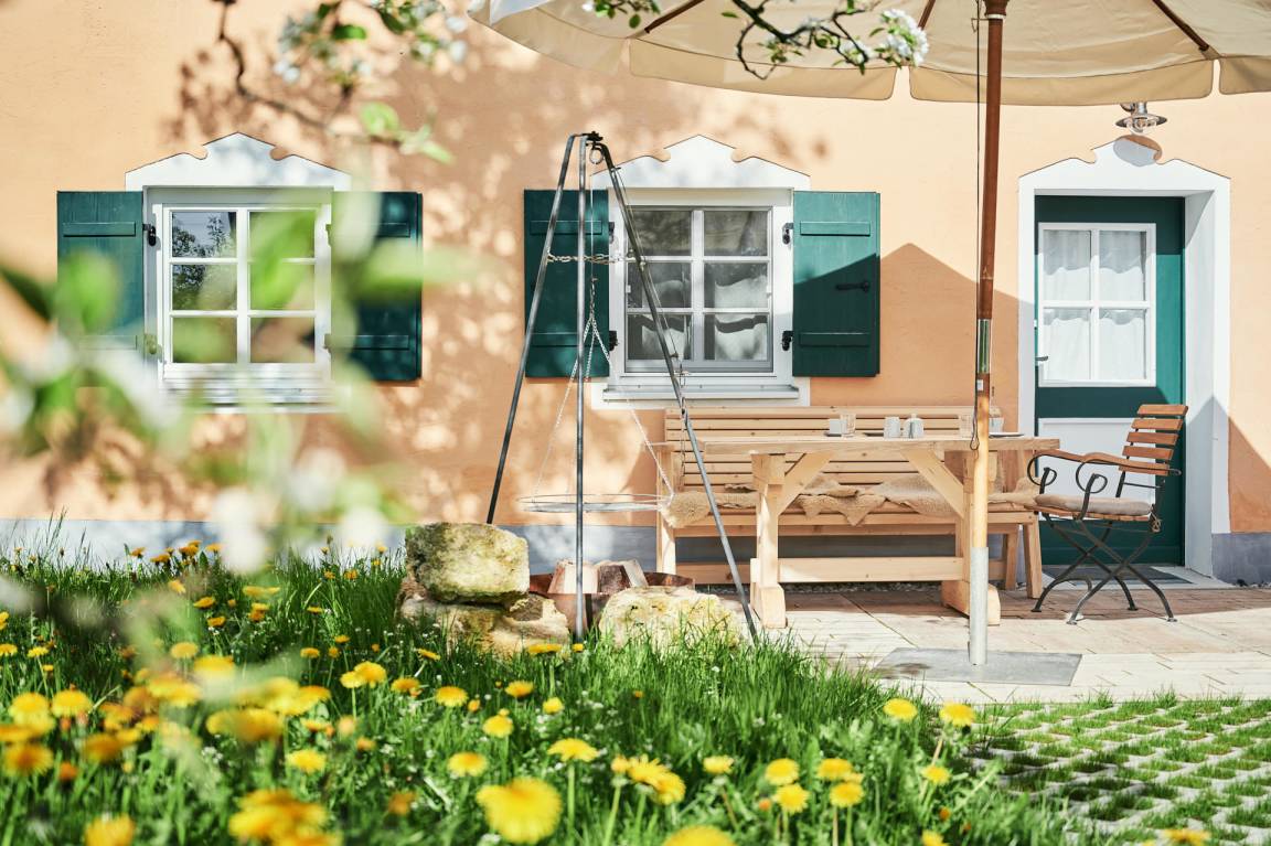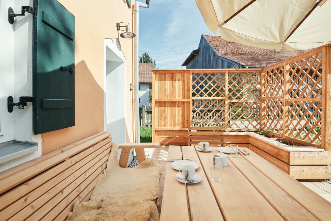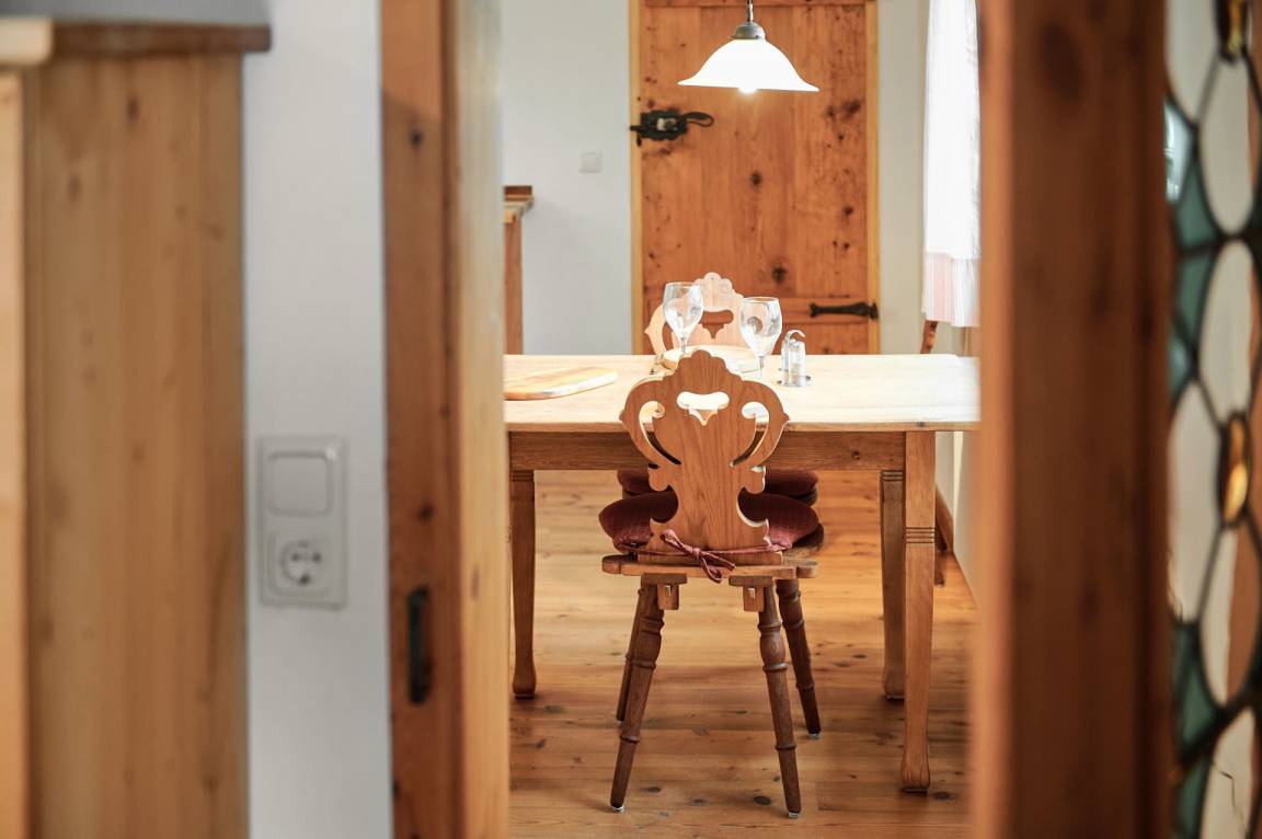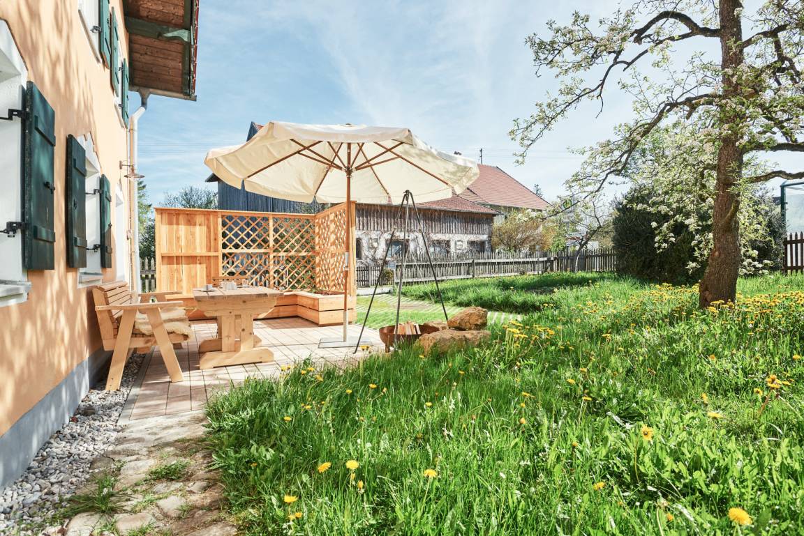 Sehr gemütliche Ferienwohnung in einem, nach baubiologischen Grundsätzen, renovierten alten Bauernhof im Ortsteil Birkland/Hofen. Die 64m² große Wohnung verfügt über einen separaten Eingang, wurde mit viel Fingerspitzengefühl und Geschmack individuell ausgestattet und bietet Platz für 2-3 Personen. Im Weiler Hofen gibt es nur 8 Anwesen, 4 davon sind traditionelle Milchwirtschaftsbetriebe. Kein Verkehrslärm stört die Ruhe. Als Einkaufsmöglichkeit steht der kleine Supermarkt mit eigener Metzgerei, Bäckerei und Gärtnerei im 6 km entfernten Ort Herzogsägmühle zur Verfügung. Größere Geschäfte finden sie in Peiting oder Schongau. Im nahegelegenen Restaurant "Zauberhütte" können Sie bei einem Stück Kuchen den traumhaften Bergblick genießen.