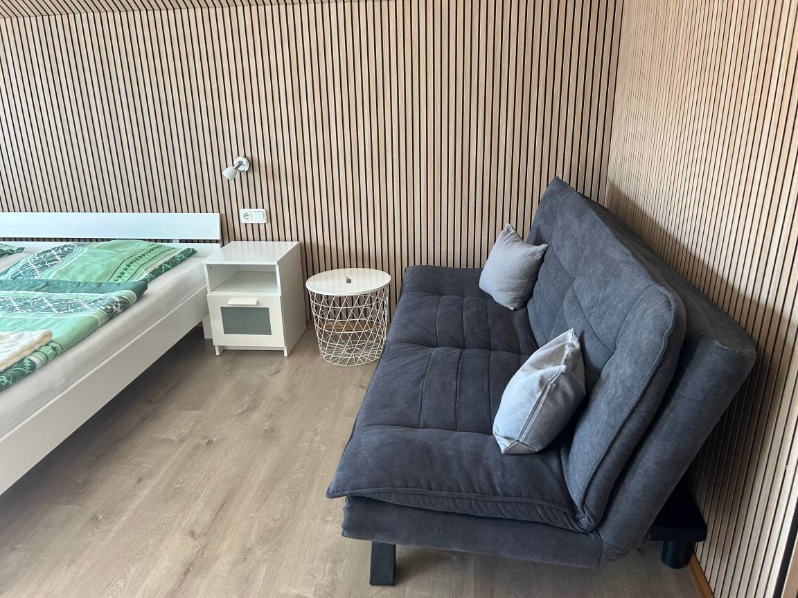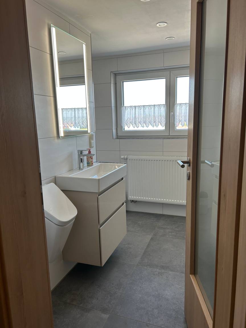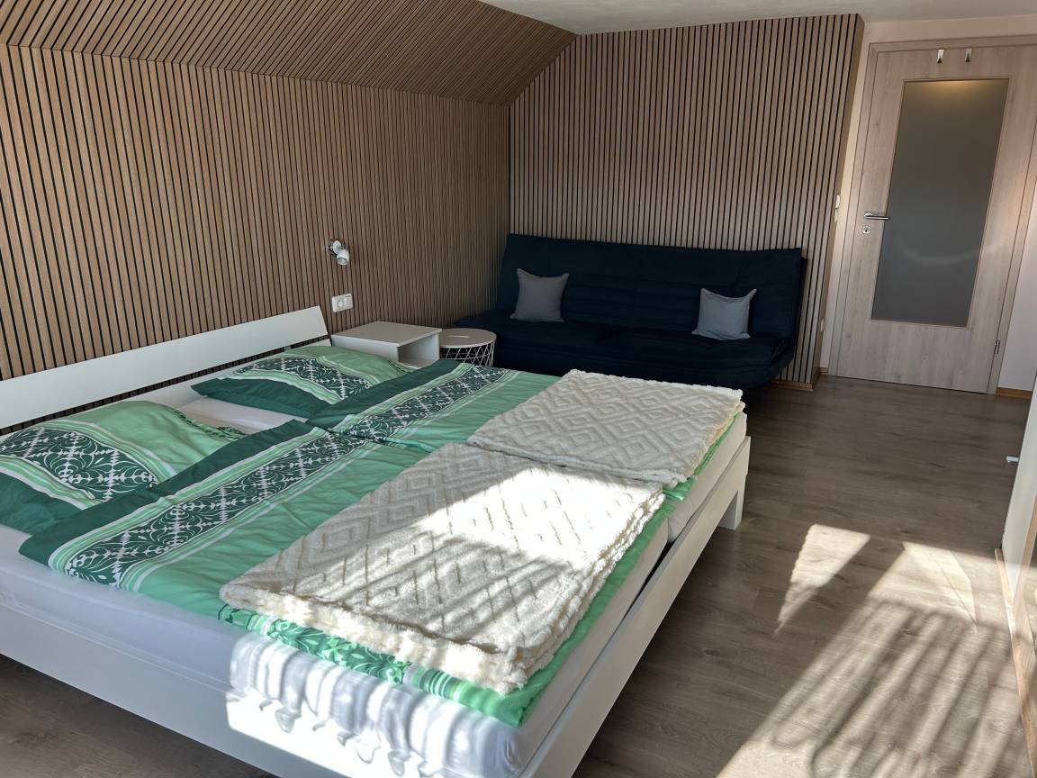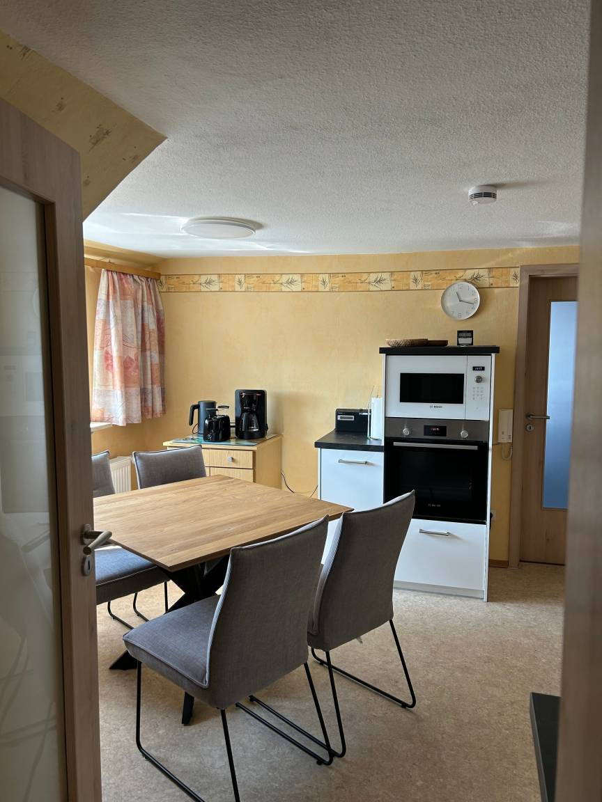 Die 89m² große Ferienwohnung bietet 1 Schlafzimmer mit Doppelbett und zusätzlichem Schlafsofa, 1 Kinderzimmer mit Einzelbett, Küche mit kleiner Speisekammer. Das neu gestaltete Badezimmer ist mit bodenebener Dusche/WC /Urinal ausgestattet. Im Wohnzimmer sorgt ein Pelletofen für gemütliche Wärme und bietet außerdem ein bequemes Schlafsofa. Fernsehgeräte im Schlafzimmer, Einzelzimmer und Wohnzimmer sowie WLAN vorhanden. Eine Waschmaschine sowie Wäschetrockner finden Sie in der Wohnung ebenfalls vor. Im Hof vor dem Haus befindet sich eine Sitzgruppe für die Ferienwohnung.