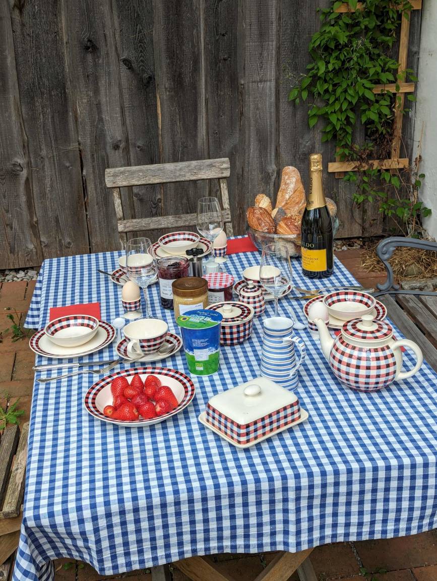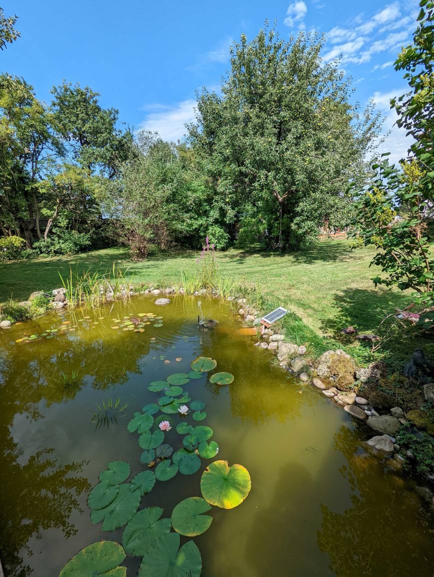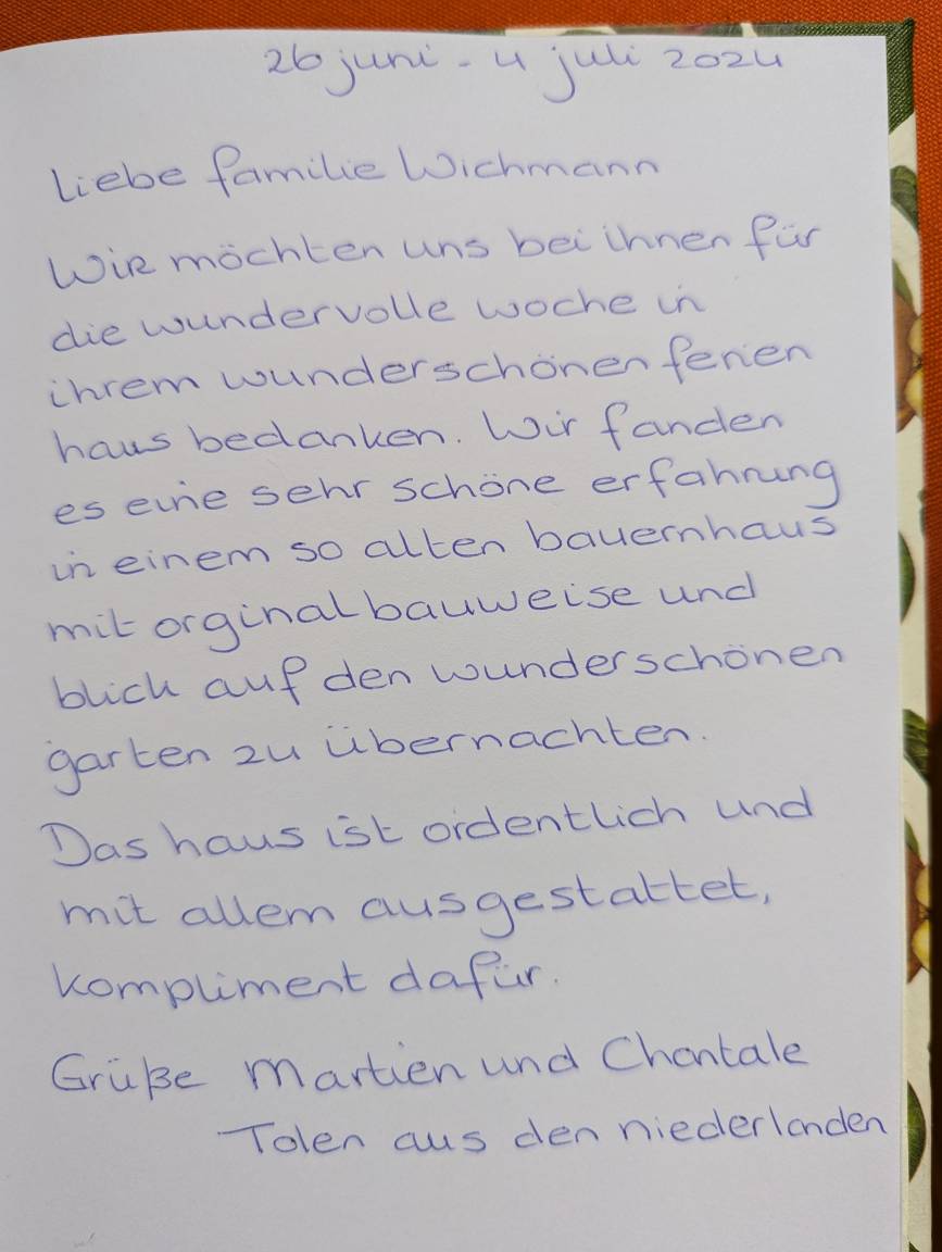 Die helle Ferienwohnung für 1-3 Personen befindet sich im 1. Stock eines historischen Kleinbauernhauses. Sie wurde 2020 unter Berücksichtigung der historischen Substanz mit neuer Technik (Bäder, Heizung, Küche) eingebaut. Maßgabe war, beim Umbau eine bäuerliche Anmutung in den Räumen zu erhalten aber keine kitschige Landhausstimmung aufkommen zu lassen. Die zahlreichen Ausblicke auf das - als Naturgarten zertifizierte - Grundstück mit den alten Apfelbäumen und dem Bauerngarten machen die Räume hell und licht. Die zur Wohnung zugehörige Terrasse liegt sonnig und geschützt unter einer Pergola an der Westseite des Gebäudes.