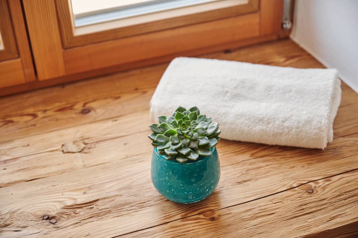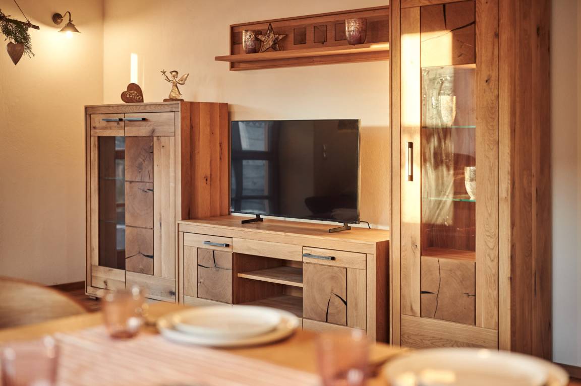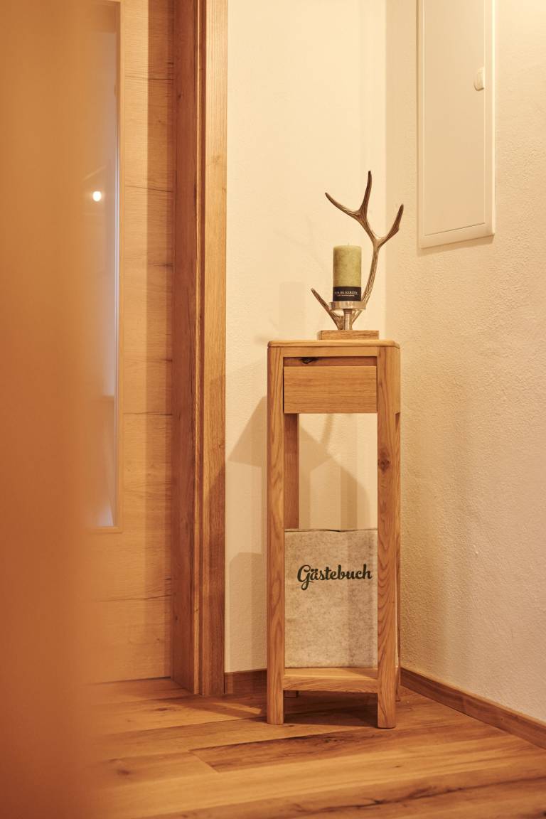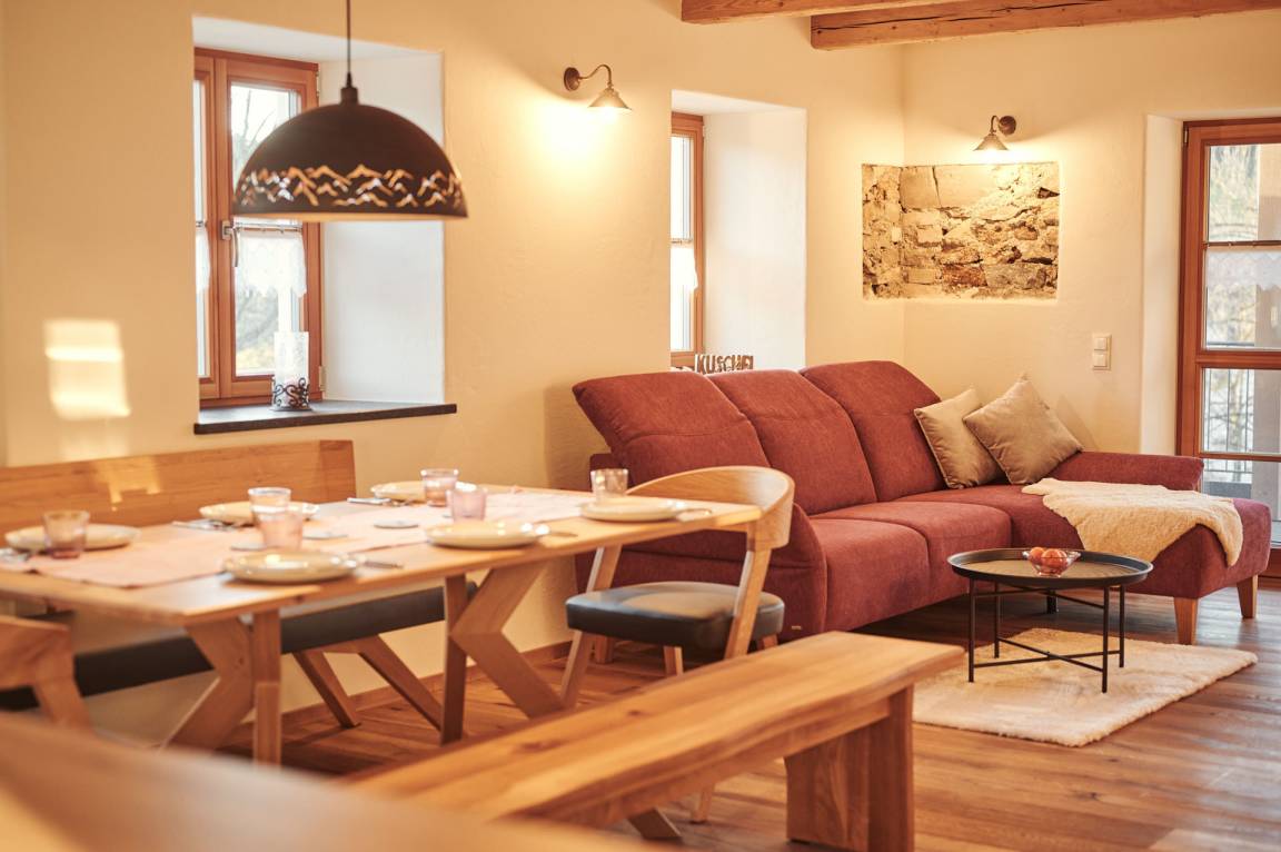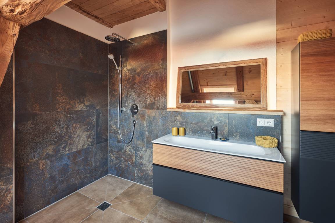 Als Zimmerei war es für uns ein MUSS, den alten Dachstuhl zu erhalten. Er ist in den beiden Schlafzimmern und auch im Badezimmer im Originalzustand (seit 1880) sichtbar. Das Dach und auch die alten dicken Mauern wurden mit nachhaltigem Holz gedämmt. So wartet zusammen mit der Fußbodenheizung und der Lüftungsanlage ein wohlig warmes Klima auf alle Gäste.