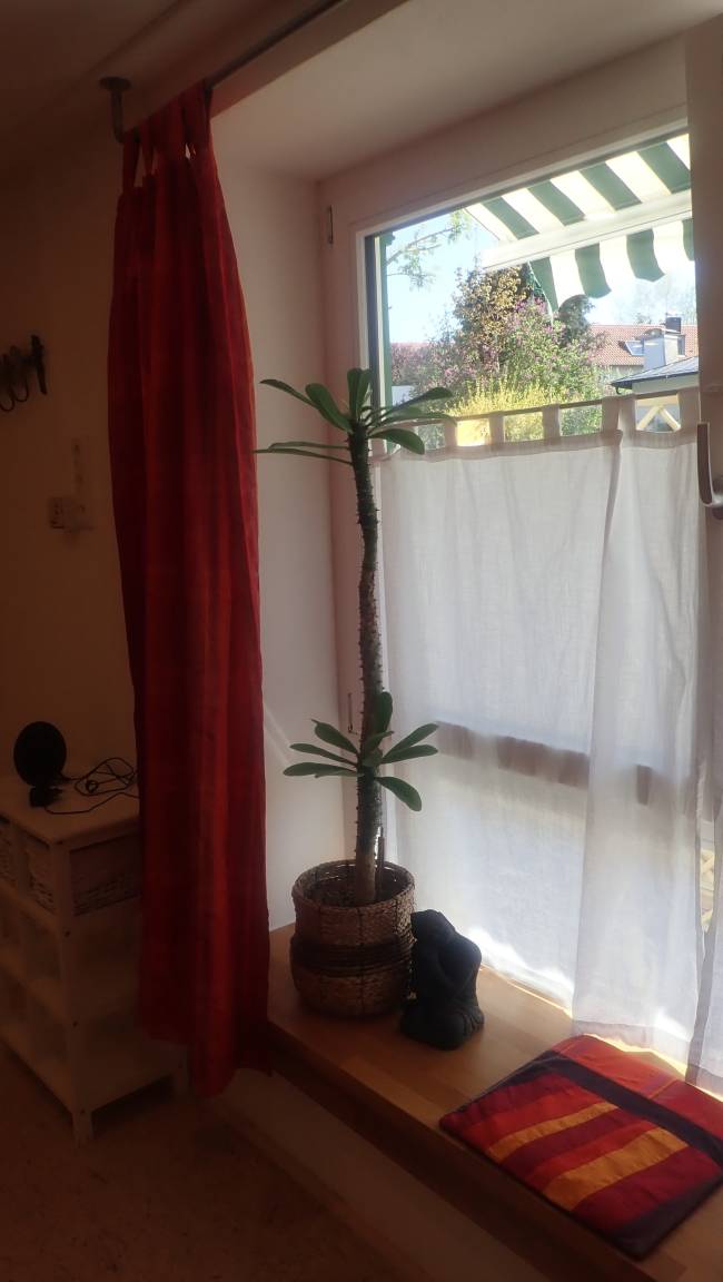 Große zweiteilige Fenster lassen viel Licht und Sonne (Südseite!) in die Wohnung, aber eine große automatische Markise über die Längsseite der Wohnung sorgt bei Bedarf für Schatten.