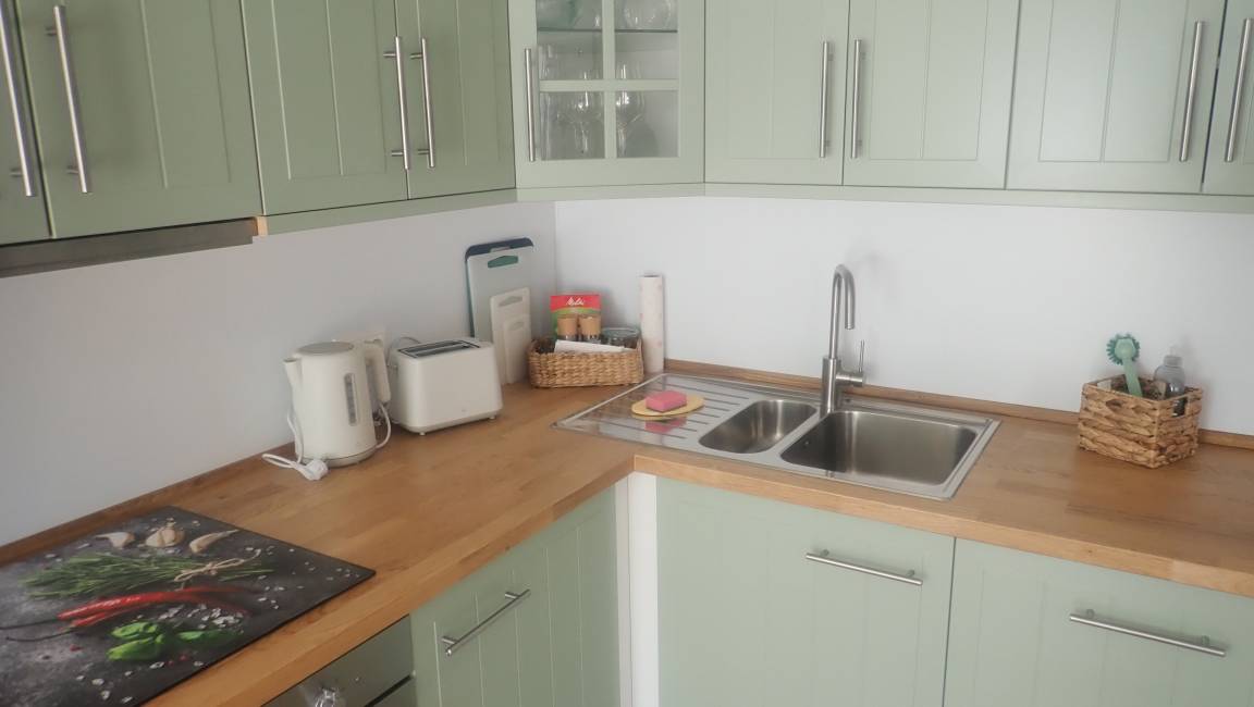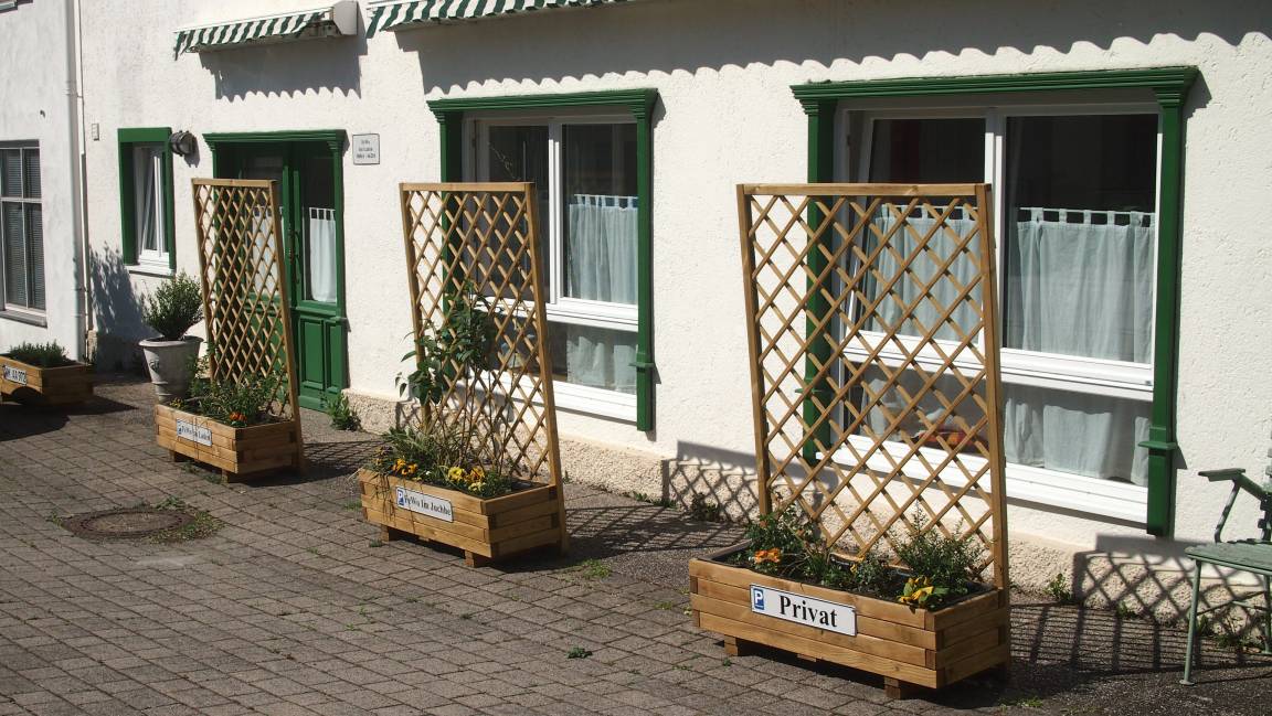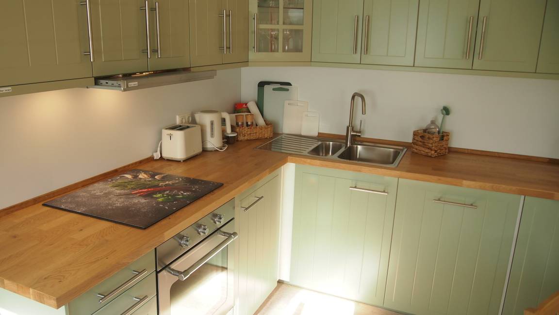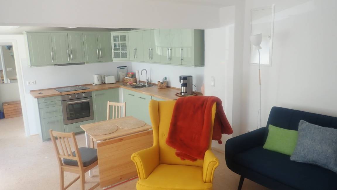 Mit Liebe und Sorgfalt haben Ihre Gastgeber, Angela Dopfer-Werner und ihr Bruder Georg Werner, das über 160 Jahre alte Erdgeschoß ihres Hauses in eine ansprechende und fast barrierefreie Ferienwohnung verwandelt. Vom Parkplatz direkt vor dem Anwesen geht es ebenerdig in die Wohnung mit eigenem Eingang. Hier erwartet Sie eine neue Einbauküche mit allem, was Sie zum Kochen und Backen benötigen, und natürlich einem schönen Sitzplatz für zwei oder vier Personen. Über eine kleine Rampe (für Rollator tauglich und mit Wandhaltegriff) geht es in den Wohnraum mit Sofa, gemütlichem Sessel mit Fußbank und dem Fernseher. Von dort gelangen Sie ins geräumige Schlafzimmer mit seinem Bett in Sitzhöhe, dem großen Wandregal und dem Bauernschrank, in denen Sie alles verstauen können. Eine Sitzbank, Stühle, Nachttische, Wandhaken und viele Kissen sorgen für weiteren Komfort. Alle Türen in dieser Wohnung sind Schiebetüren, so dass Sie sich bequem bewegen können, die Lichter sind unterschiedlich einstellbar und zum Dimmen, so können Sie sich die Stimmung schaffen die Sie wünschen.