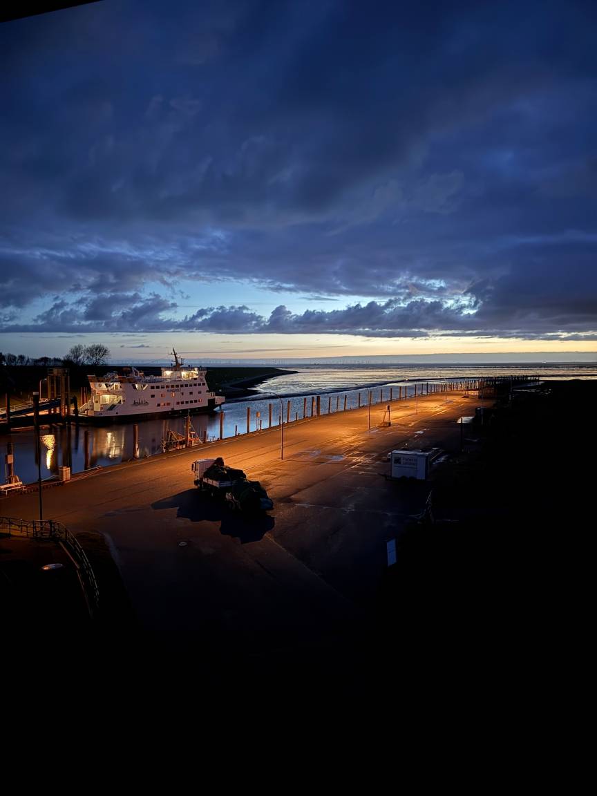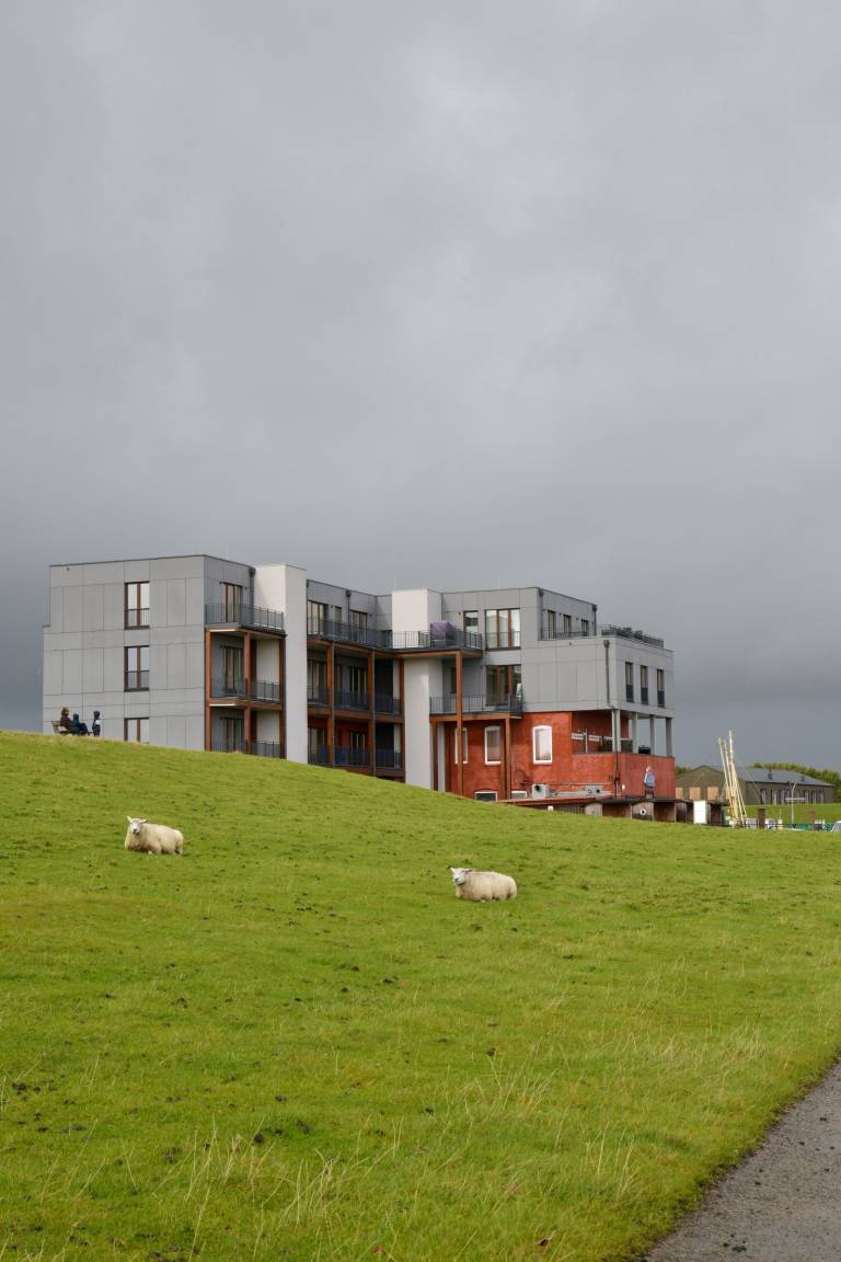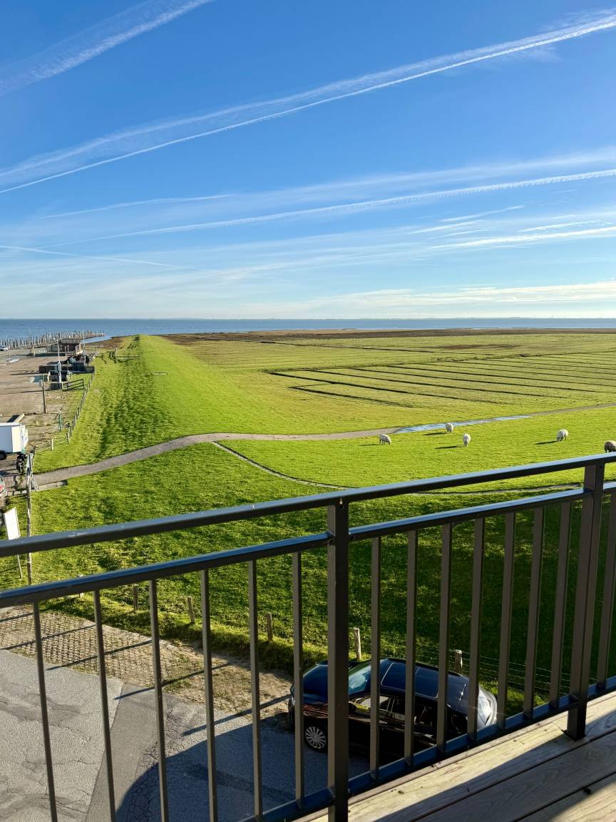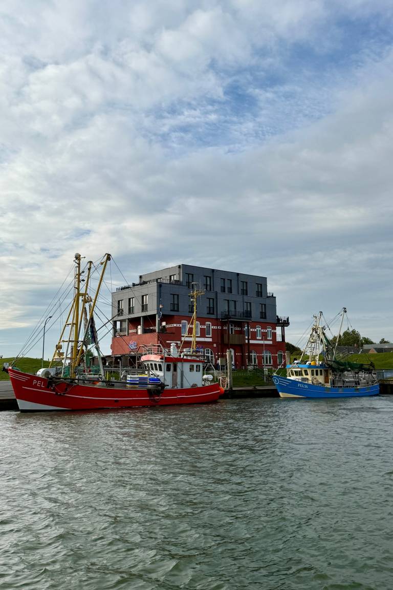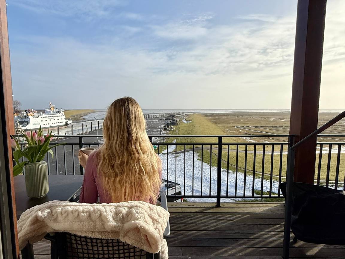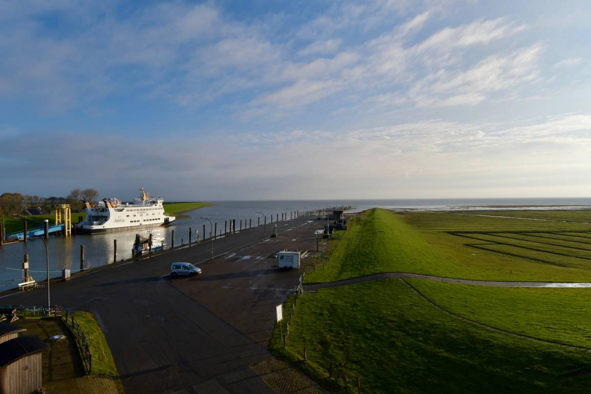 Erlebe deine Auszeit auf Pellworm mit direktem Blick auf das Meer und den Hafen.