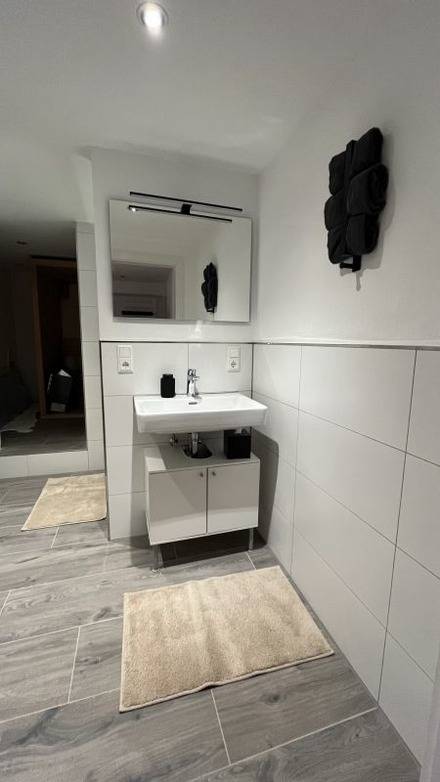 Das Badezimmer des Appartements ist neu renoviert und verfügt über eine Dusche sowie moderne Armaturen. Luxuriöse Handtücher und Pflegeprodukte stehen für Sie bereit.