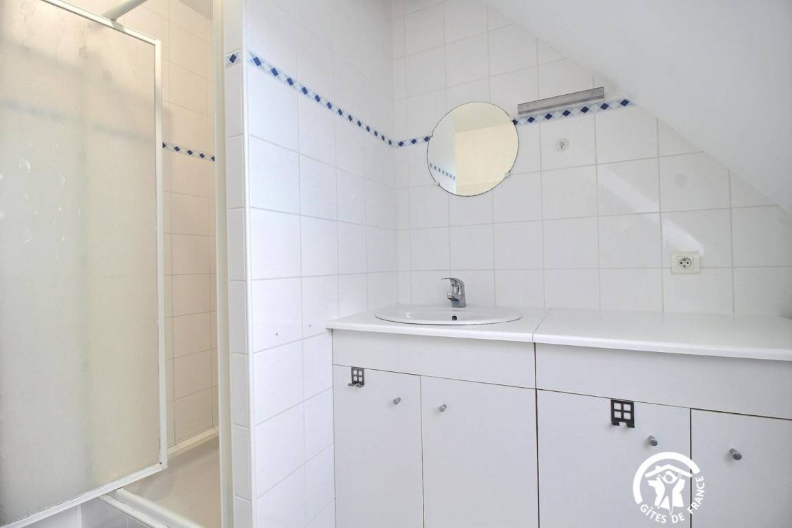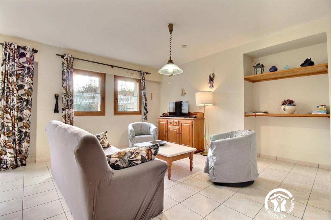 Le Gîte Marin bietet im Erdgeschoss: ein großes Wohnzimmer mit Wohnzimmer, Wohnzimmer und voll ausgestattetem Küchenbereich sowie eine Toilette. Das Wohnzimmer öffnet sich über einen verschiebbaren Erker direkt auf die Terrasse und den nach Süden ausgerichteten Garten, wo die Gartenmöbel, die Liegestühle und der Grill auf Sie warten.