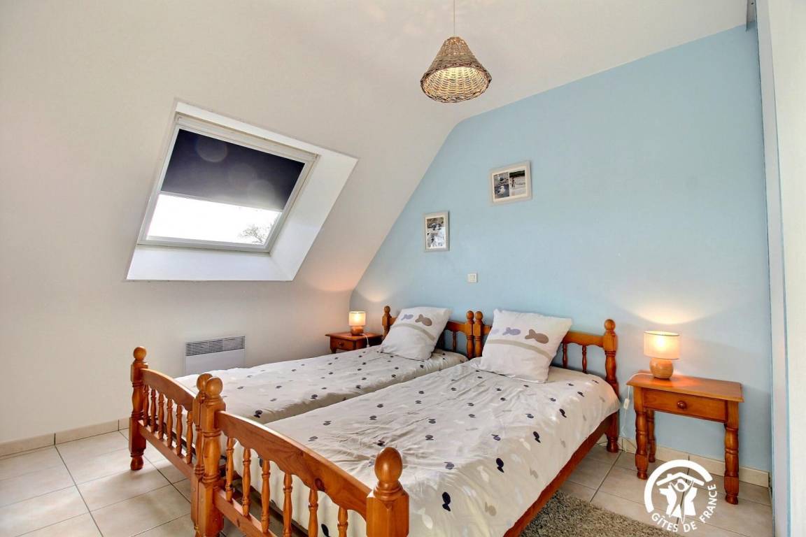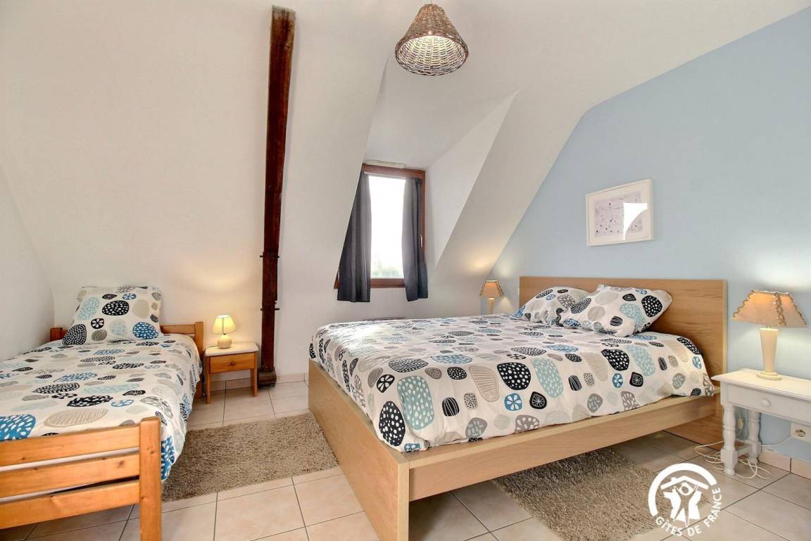 - Obergeschoss: 2 Schlafzimmer (1 Schlafzimmer mit einem 160-cm-Bett und einem 90-cm-Bett, ein weiteres Schlafzimmer mit 2 90-cm-Betten. 1 Kinderbett) und ein Duschbad mit WC.
