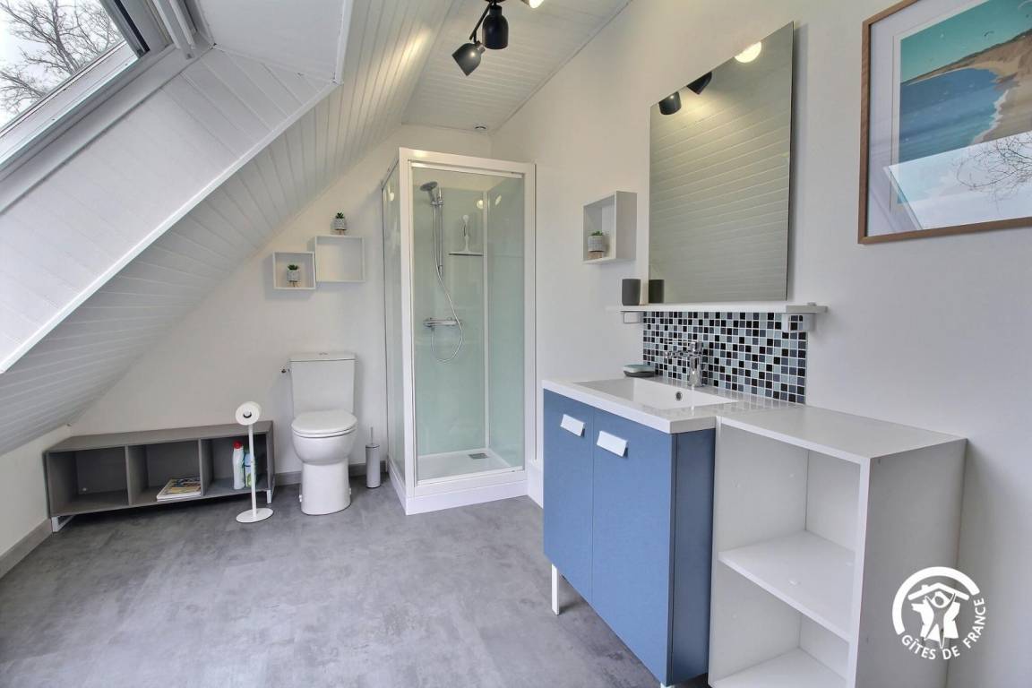 For a holiday in southern Brittany, come to Pénestin, a charming seaside resort with a micro-climate due to the nearby saltmarshes and 25km of coastline with many fine sandy beaches, ideal for swimming, water sports, paragliding, walking and rockpool fishing. Visit the fishing port of Tréhiguier, walk along the banks of the River Vilaine or take a boat trip. Visit the character village of La Roche Bernard (15 minutes), Guérande and its saltmarshes (20 minutes) and the well-known resort of La Baule (30 minutes). Discover Vannes and the Gulf of Morbihan, one of the most beautiful bays in the world (40 minutes). This gite is in a quiet cul-de-sac, 1km from the village centre. GR.FL : Lounge-diner and open-plan kitchen. Bedroom 1 : double bed. Shower room. WC. Garage with utility area and storage space for bikes and motorbikes. UPSTAIRS : Landing with play area. Bedroom 2 : single bed. Bedroom 3 : double bed. Garden with boules and patio which is not overlooked.Garage with utility area and