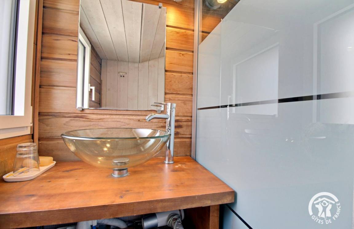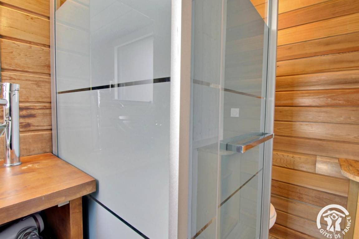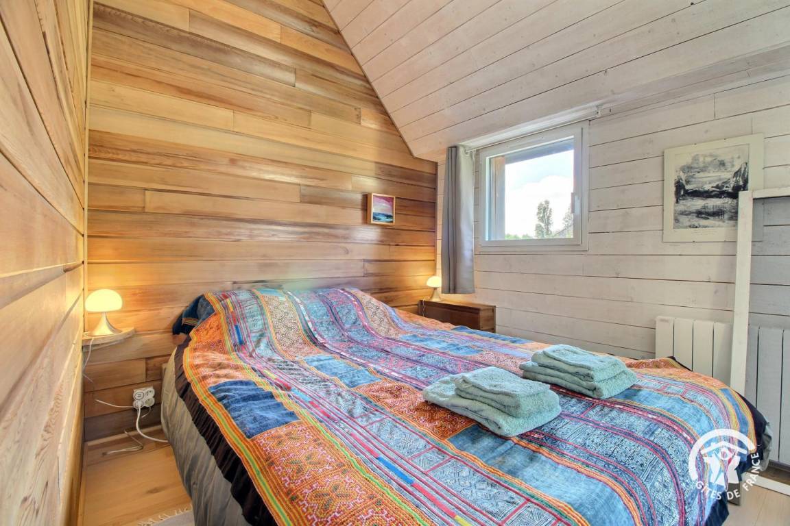 Diese ökologisch gestaltete Holzkonstruktion bietet Ihnen eine lichtdurchflutete Unterkunft mit Blick auf den schönen Garten.