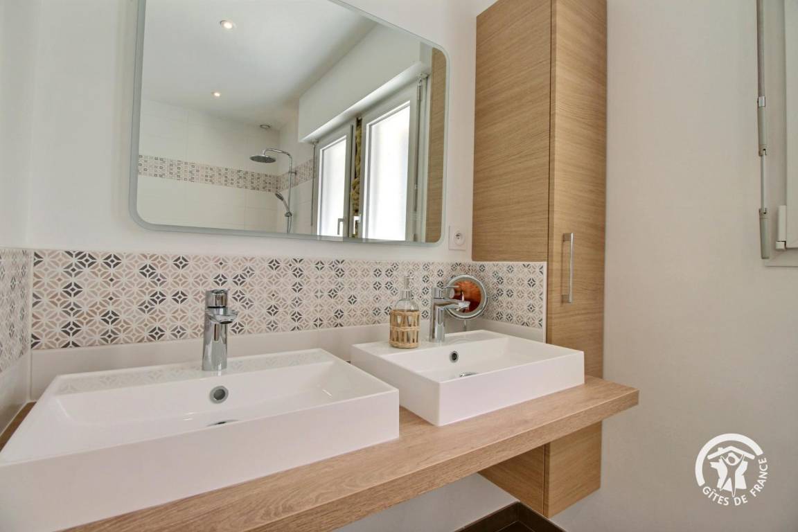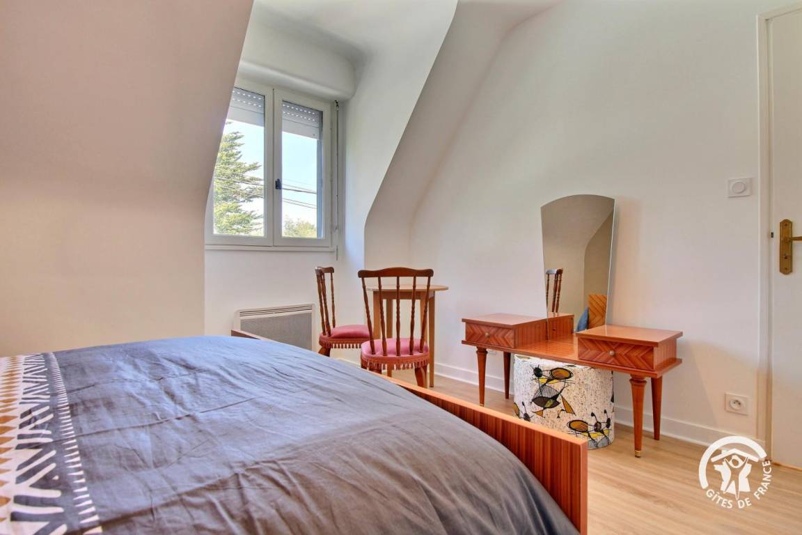 „Nous avons passé un excellent séjour en famille dans ce très beau gîte situé à quelques pas de la plage. La propreté est irréprochable, la literie de qualité, les chambres sont spacieuses, ajoutez à cela un garage, des vélos. TOP“