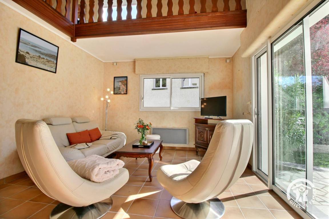 „Gite très bien situé près de la mer à pied, avec jardin et intérieur confortable et pratique même avec l'escalier. Nous avions 3 jeunes enfants de 2 à 5 ans. Accueil chaleureux et souplesse quant à l'arrivée et départ du gîte.“
