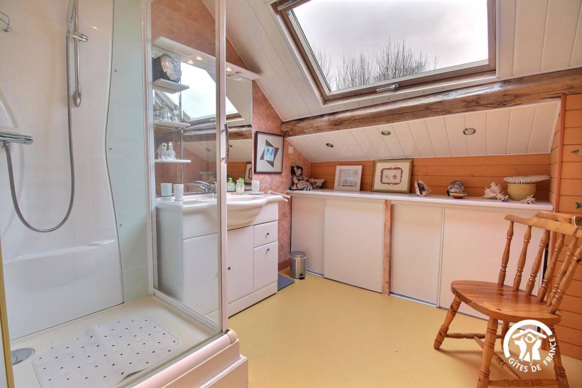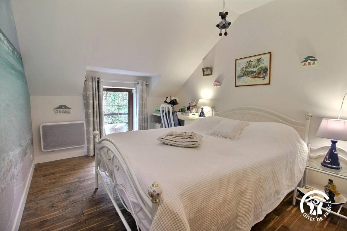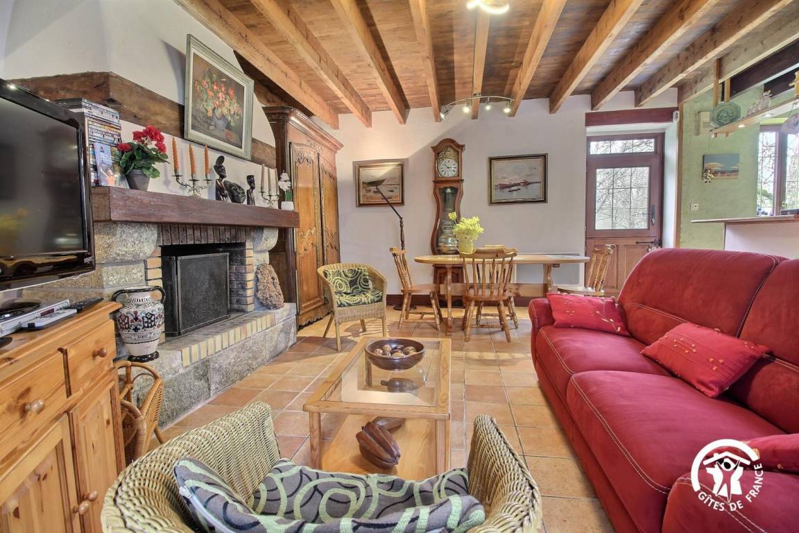 Gite adjoining the owner's house 3 km from Pénestin. Living room / kitchen corner / sitting area (DVD player). 1 bedroom (1 double bed,1 child bed), shower room/wc, other shower, WC electric heating. Terrace, garden furniture,BBQ. Shared garden of 1200 hectares.This renovated old farm sits in wooded grounds in south Brittany,between La Baule and Vannes. Within 4 km are beaches, shops, and the estuary of the river Vilaine. Close to the sea and yet in the peace of the countryside it offers a wide choice of leisure activities : ramble, cycle, fish at low tide, collect shells on the beach.