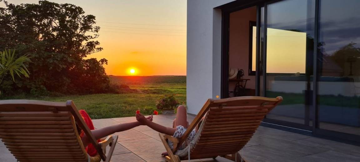 „Très bon séjour dans une superbe maison, aux prestations de qualité, avec une vue dégagée sur une nature préservée et en prime, des couchers de soleil magnifiques. Accueil très sympathique, petites attentions (fleurs, crêpes, cidre).Détente assurée ! Nous recommandons sans hésitation !“