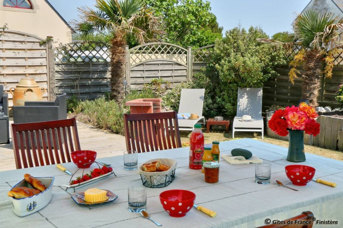 „Nous sommes complètement enchantés de notre séjour 'Chez Tante Jeanne'. Tout était parfait, un accueil très sympathique et chaleureux, un intérieur joliment meublé et décoré. De la belle vaisselle, de beaux ustensiles pour cuisiner, rien ne manquait. De plus, le soleil était au rendez-vous et nous avons pu profiter de petits-déjeuners et déjeuners en terrasse sans compter les instants détente au jardin. Une belle parenthèse enchantée dans ce pays bigouden où mer et campagne se côtoient dans un accord parfait.“