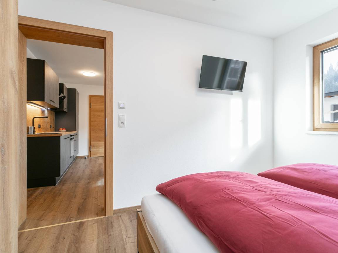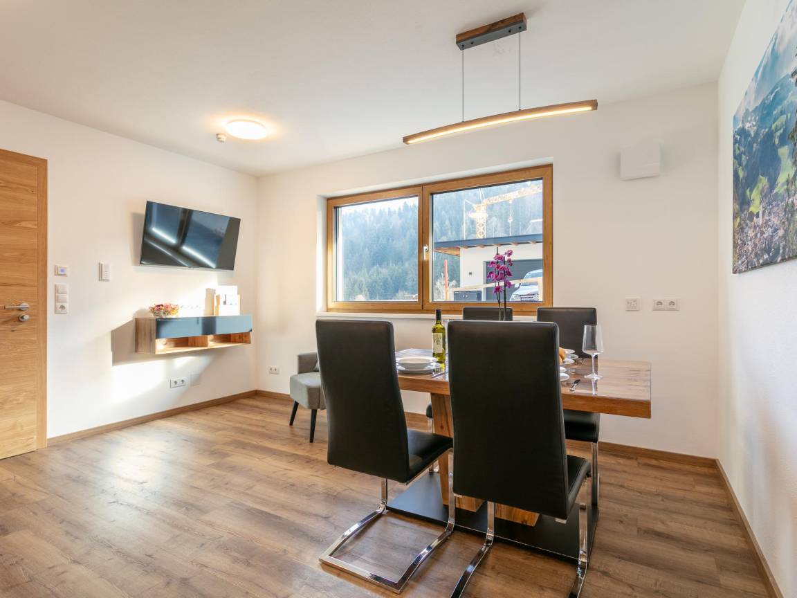 Hausbeschreibung : Diese moderne Ferienwohnung im Erdgeschoss in Hopfgarten liegt in ruhiger Lage in den Kitzbüheler Alpen und bietet auf 50 m² alles für einen entspannten Urlaub. Zwei Schlafzimmer mit TV, ein modernes Badezimmer sowie ein offener Wohn-/Essbereich mit voll ausgestatteter Küche sorgen für Komfort. Die private Terrasse und der Garten laden zum Verweilen ein. Parkplatz inklusive – ideal für Paare, Familien und Aktivurlauber