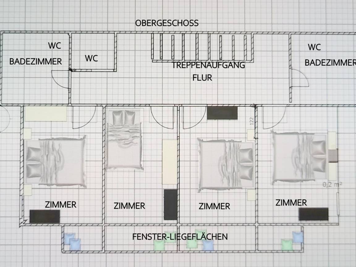 In der 1. Etage: Schlafzimmer mit Doppelbett(140 x 200 cm) , 3x Schlafzimmer mit Doppelbett(180 x 200 cm) , Badezimmer mit Waschbecken, Dusche, Toilette, Föhn , Badezimmer mit Waschbecken, Dusche, Toilette, Föhn , Toilette mit Waschbecken, Toilette