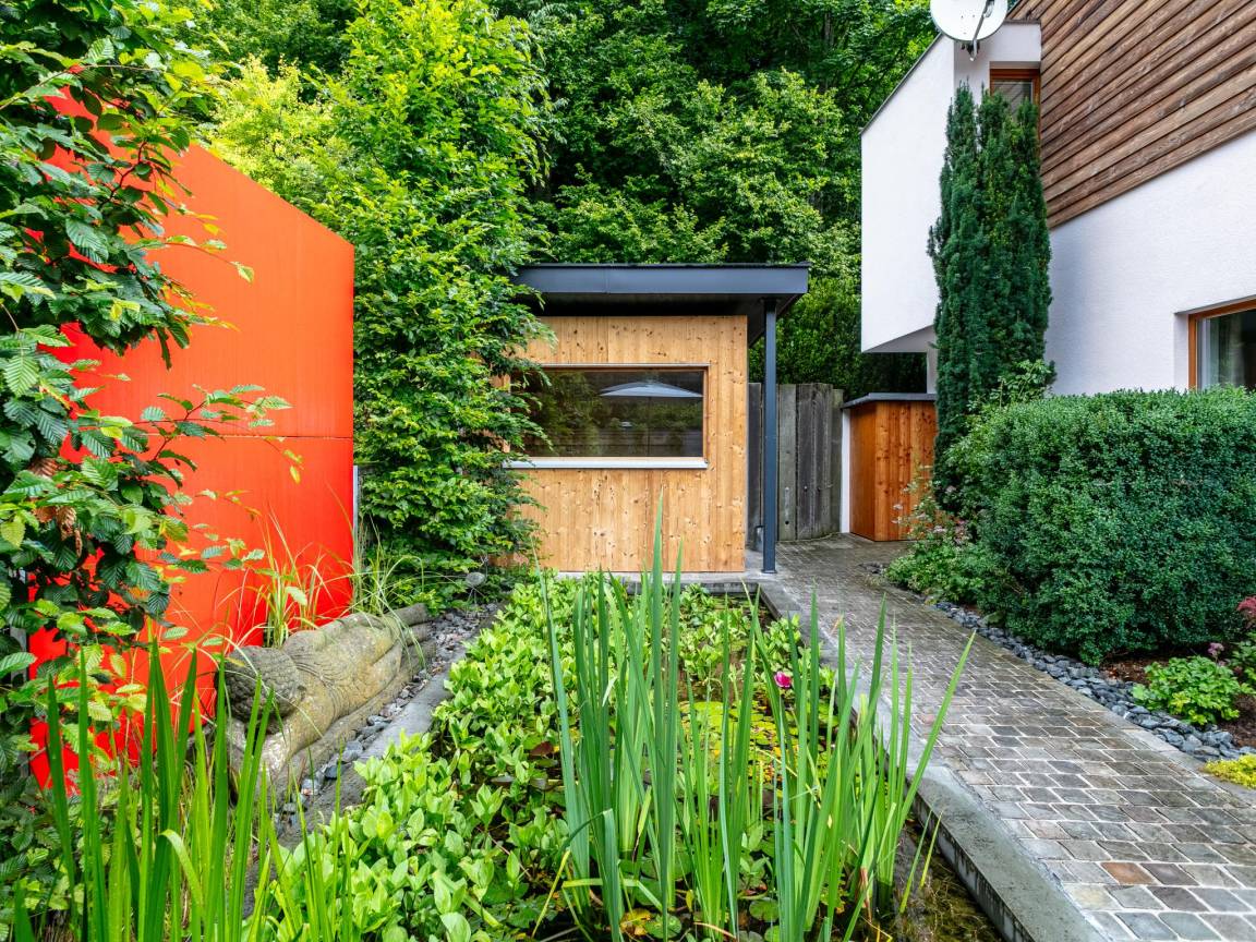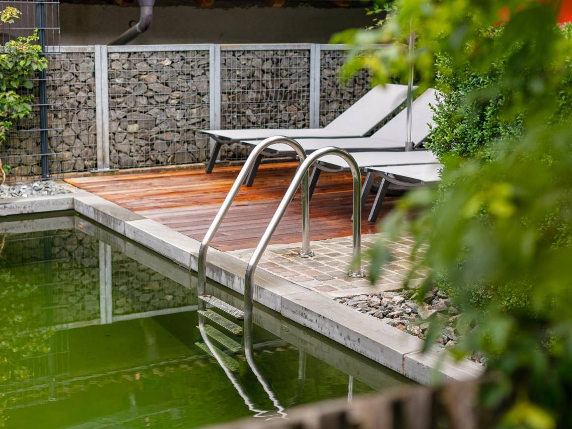 1x Carport(1 Parkplatz), Wäschetrockner, Waschmaschine, Terrasse mit Esstisch, Sitzecke, Sauna , Garten(alleinige Nutzung, angelegt, teilweise umzäunt, 170 m²), Gartenmöbel, Liegen, Pool(im Garten, Naturschwimmteich, 6 x 3 m., Tiefe: 1.5m, Tiefe: 1.5 - 2.0m, geöffnet von Jun bis einschließlich Sep), 2x Kinderbett (ohne Bettwäsche), 1x Hochstuhl, Bügelbrett, Bügeleisen, Lademöglichkeit für Elektroautos