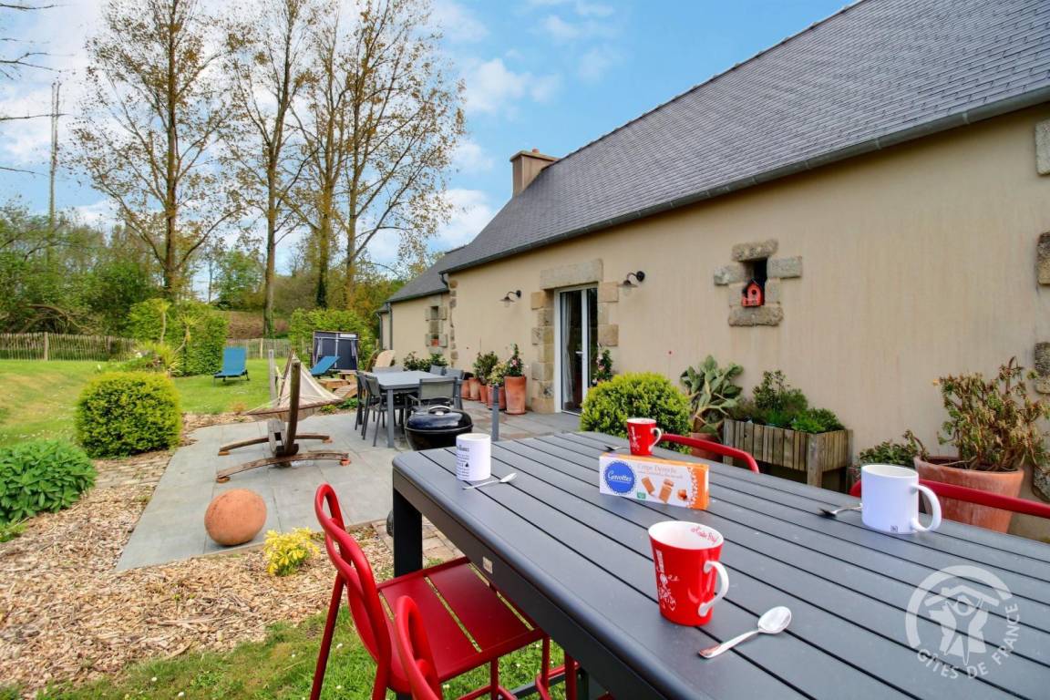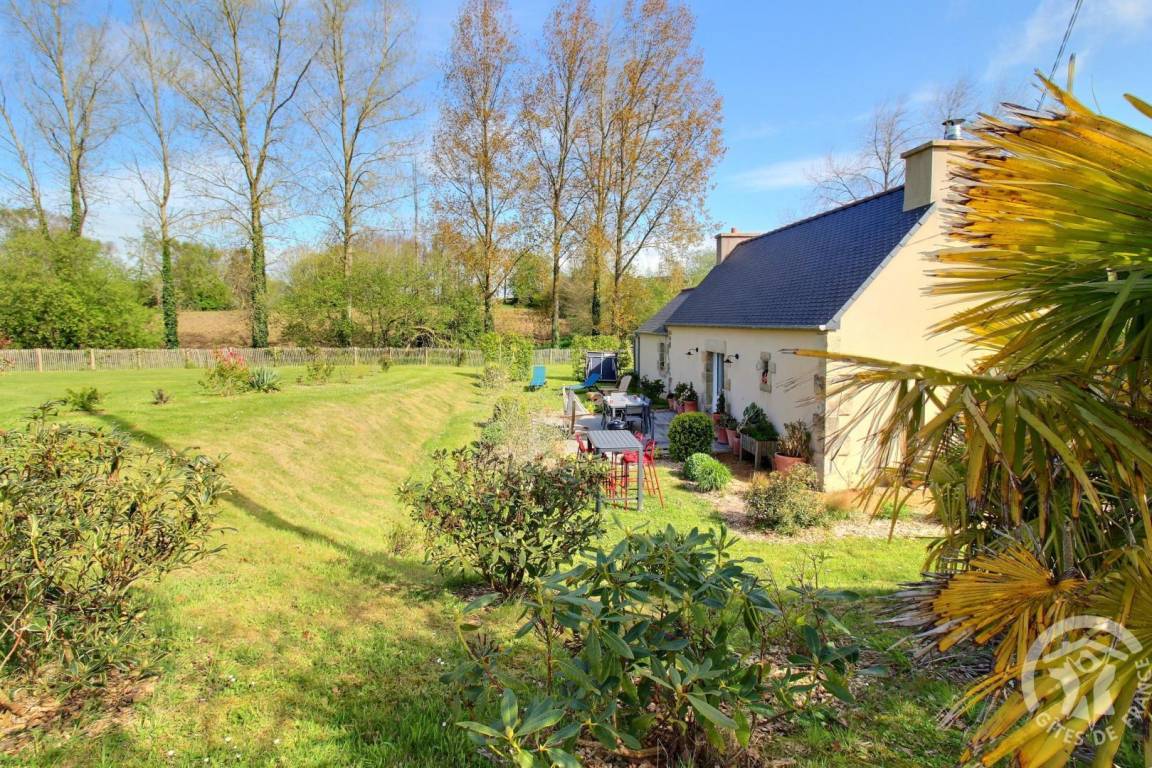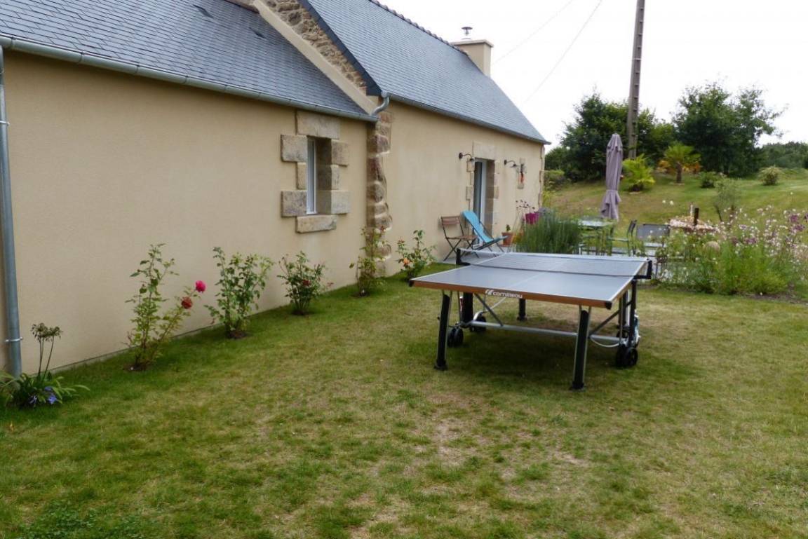 „The cottage lies in an amazing large playground and has lots of flowers and a beautiful garden. It’s quiet and you can watch the stars at night. The cottage is well equiped and has everything you need. The bakery is nearby and also the nice little Port Blanc. Thank you also Yveline for your support and warm welcome.“