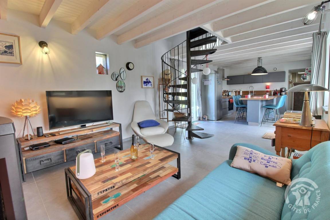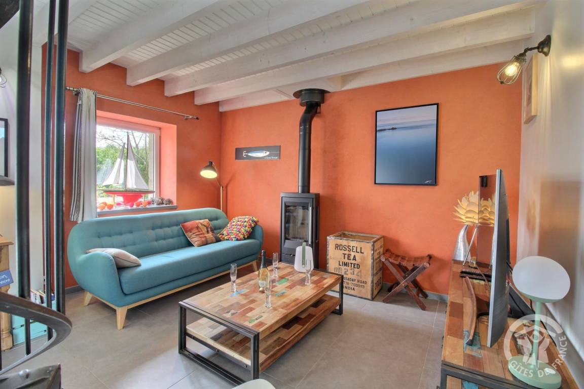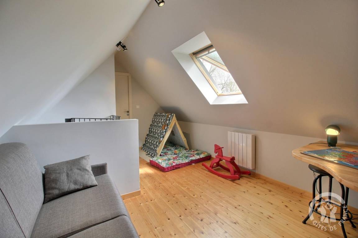 Diese Urlaubsbleibe umfasst : Im Erdgeschoss : ein Ess-Wohnzimmer mit schöner Einbauküche, Holzofen (erstes Feuer gratis), 1 Zimmer (1 Bett 160x200), ein Badezimmer mit Dusche, eine separate Toilette. Das Obergeschoss ist erreichbar durch eine Wendeltreppe, hier gibt es einen schönen Entspannungsbereich und 1 Schlafzimmer (2 Betten 120x190). Südterrasse, Hof vor dem Haus und 500 qm große Rasenfläche auf der Rückseite. Kleiner Keller mit Waschbecken.