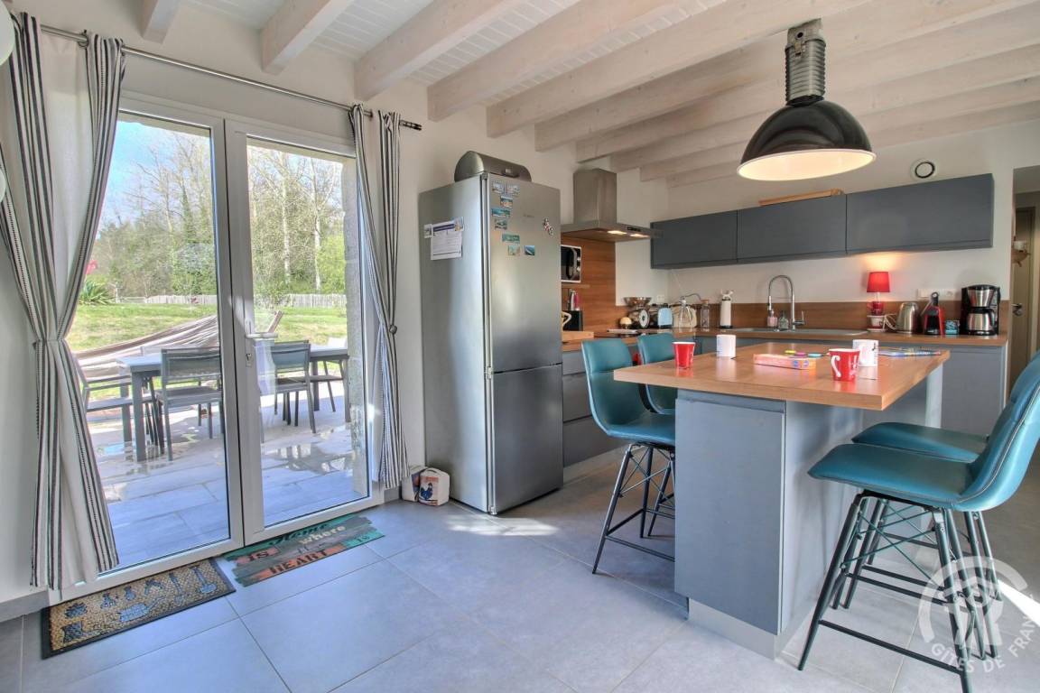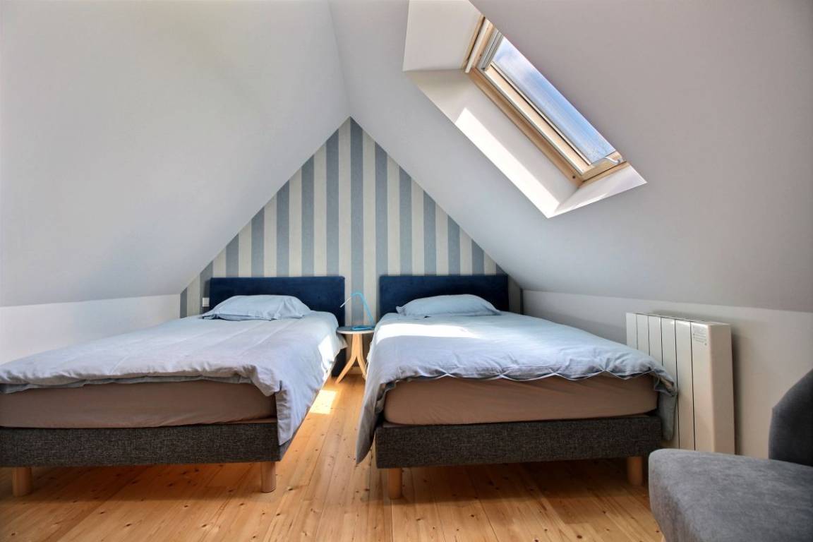 „Gîte très bien agencé, avec des équipements de qualité. Les deux terrasses sont certainement très agréables aussi, mais le temps ne nous a malheureusement pas permis d'en profiter, car même si en Bretagne il faut beau plusieurs fois par jour, les températures n'autorisaient pas l'usage. Un grand merci à Yveline pour la qualité de l'accueil et la propreté irréprochable de la maison.“