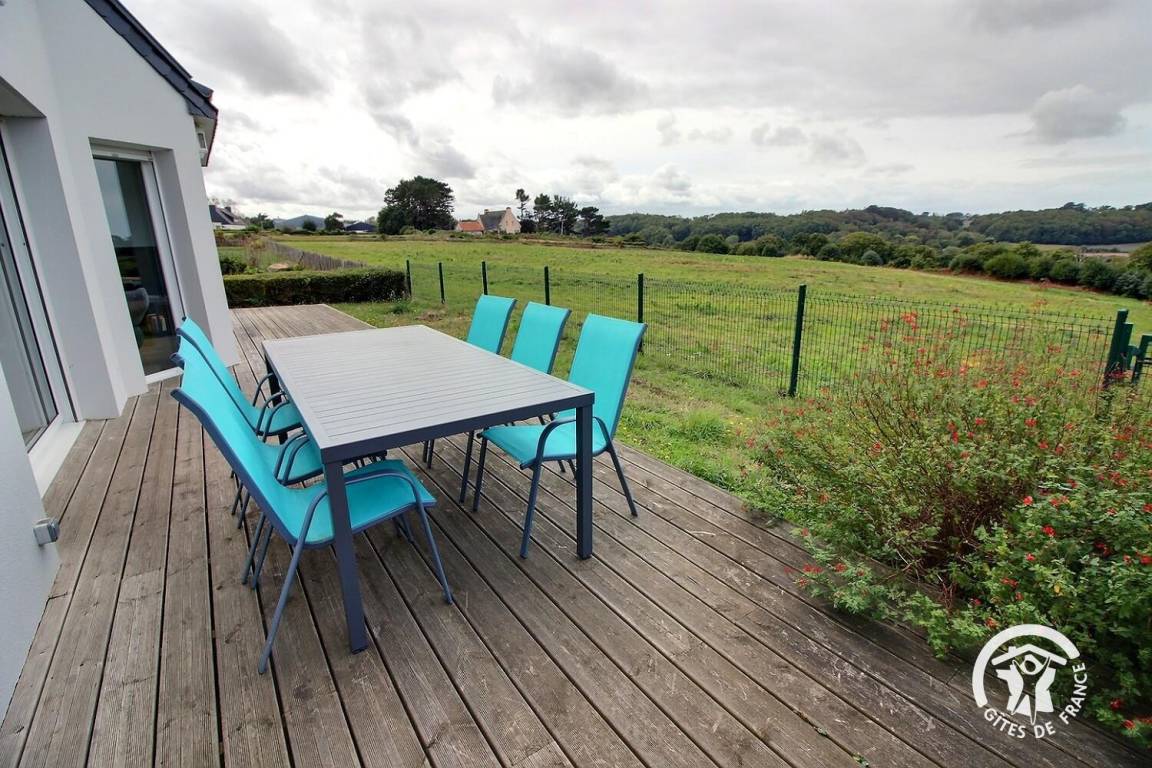 • Ein teilweise umzäunter 800 m² großer Garten mit einer 54 m² großen Holzterrasse mit atemberaubendem Meerblick.