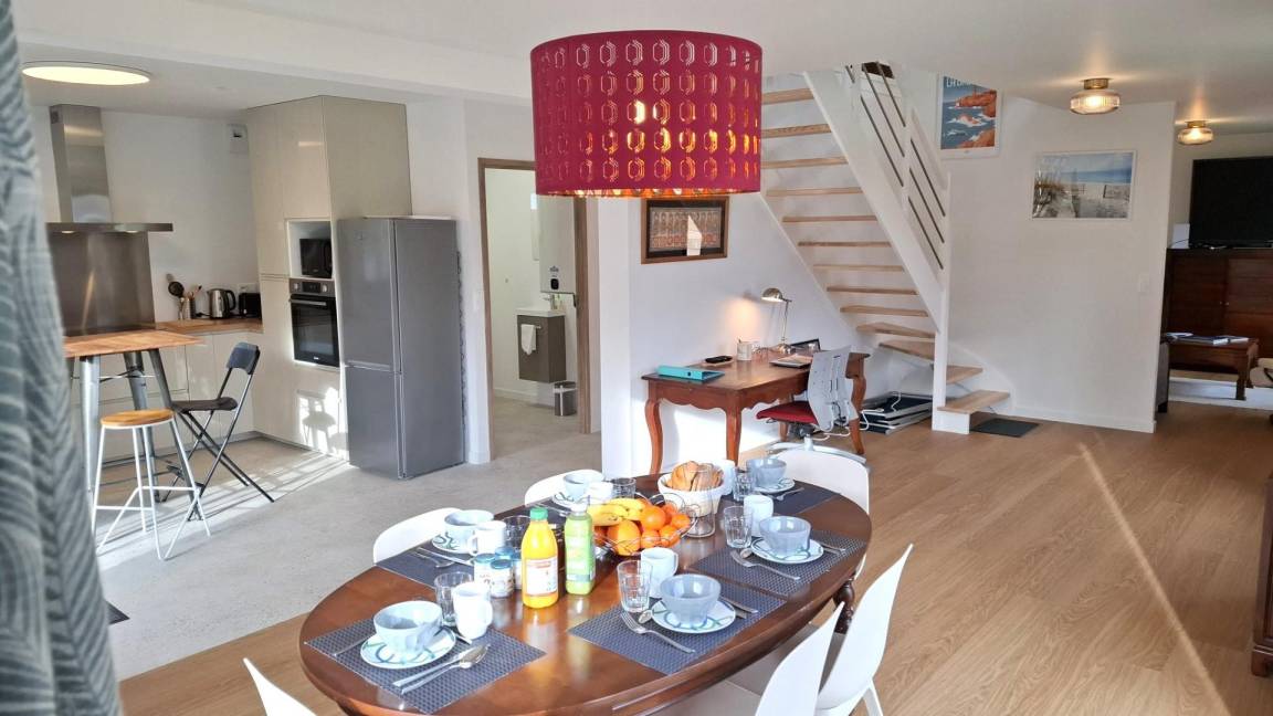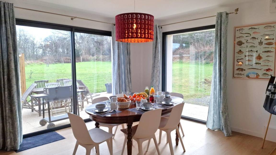 „Nous avons passés une très belle semaine à Buguélès, le gîte est très bien équipé et l’accueil est excellent. Le secteur est remarquable avec une multitude de choses à faire avec les enfants entre plages de sable blanc, randonnées et pêche à pied…Le gîte est tout neuf et très spacieux, la literie très bonne et la propreté parfaite. À noter les lits faits à l’arrivée et divers fournitures appréciables comme huile, vinaigre et aussi le nécessaire en produits pour la douche ainsi que les serviettes en nombre et qualitatives. Darlène, la propriétaire, est disponible si besoin et connaît parfaitement le secteur, merci pour les conseils fournis en début de séjour“