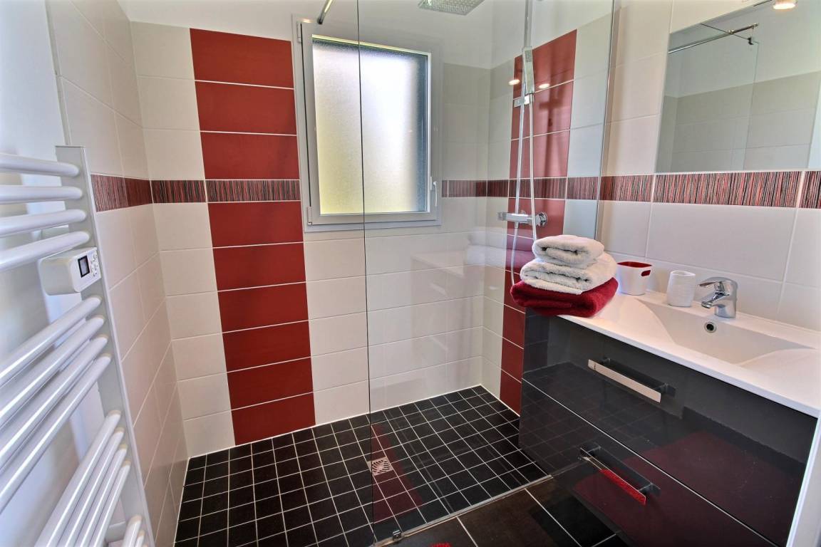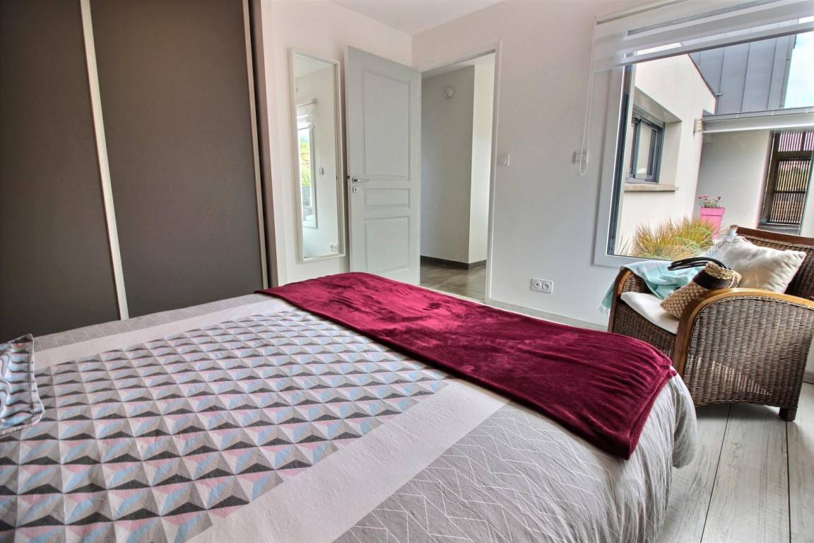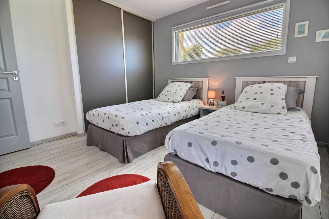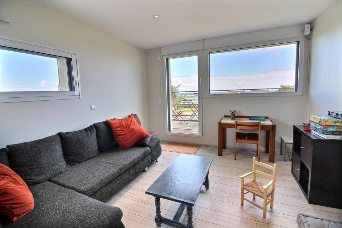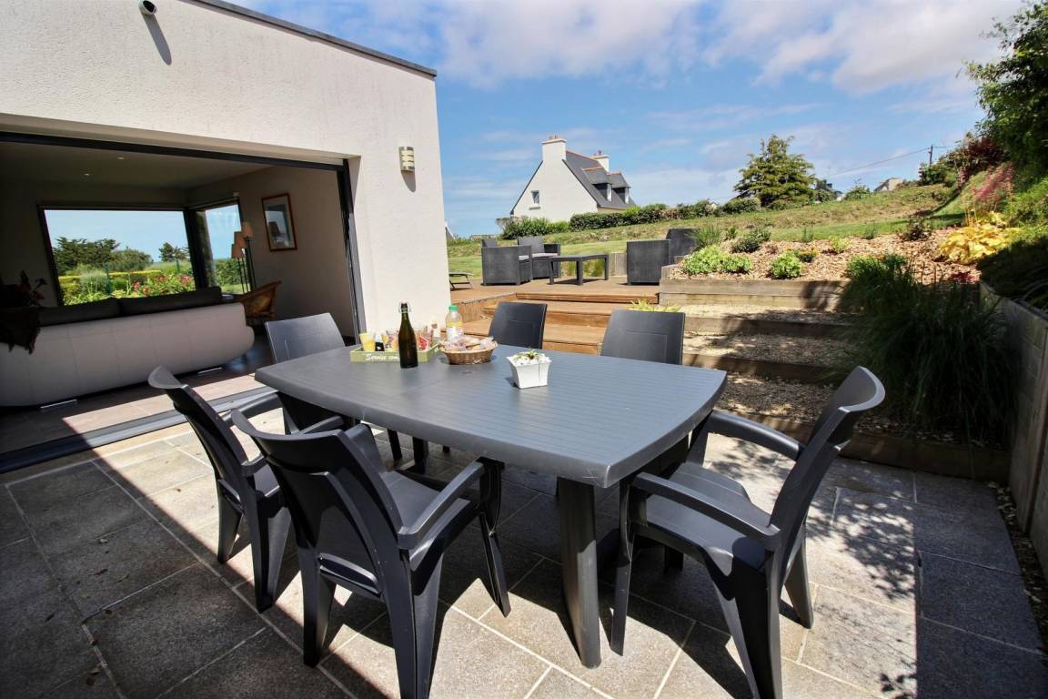Ihre Ferienwohnung umfasst: Ausgestattete Küche mit Kochinsel, geräumiges Wohnzimmer und Lounge (USB-Flachbildfernseher) Holzofen. Wäschekammer. 1 Schlafzimmer (1 Doppelbett 160x200 mit eigenem Bad), 1 Schlafzimmer (1 Doppelbett 160x200), 1 Schlafzimmer (2 Einzelbetten 90x190, die zusammengestellt werden können), Badezimmer mit Dusche, 2 separate Toiletten. Zwischengeschoss und Terrasse im Obergeschoss mit Blick auf die Inseln. 800 m² großer Garten mit 2 Terrassen. Parkplatz und Hof für Autos, Abstellraum für Fahrräder oder Motorräder.