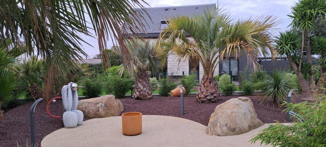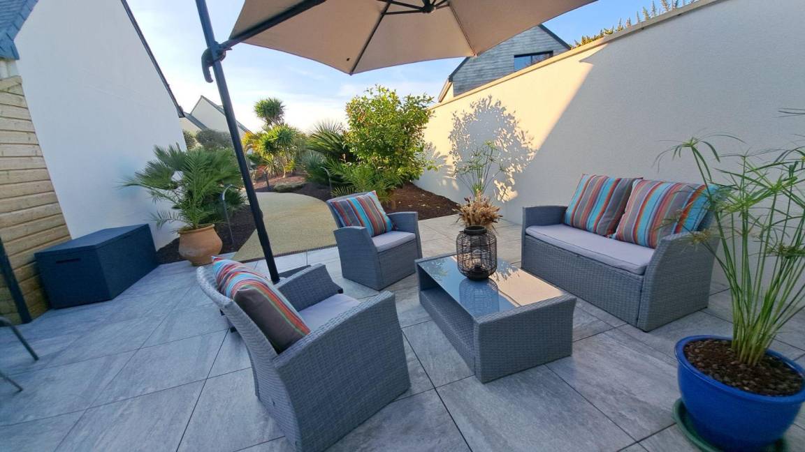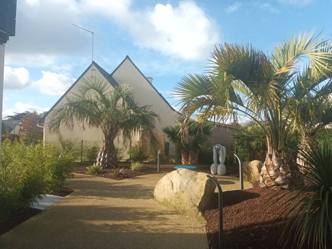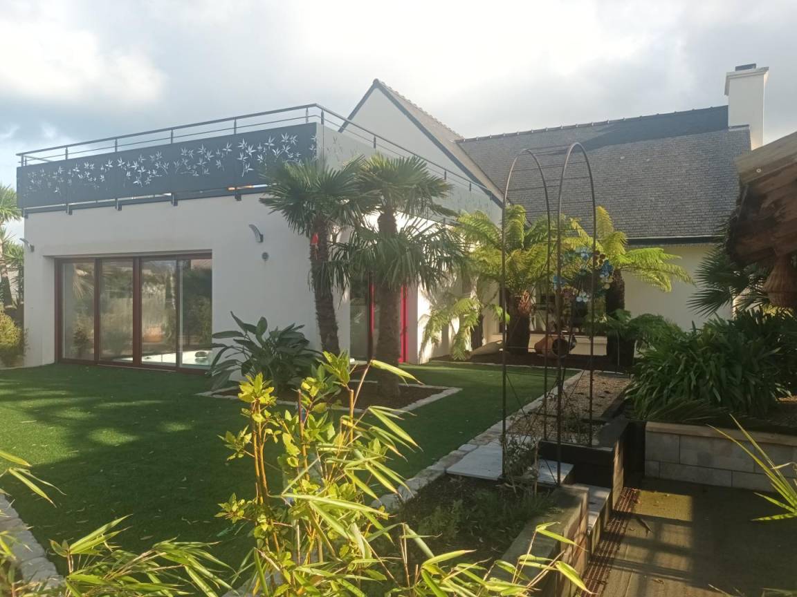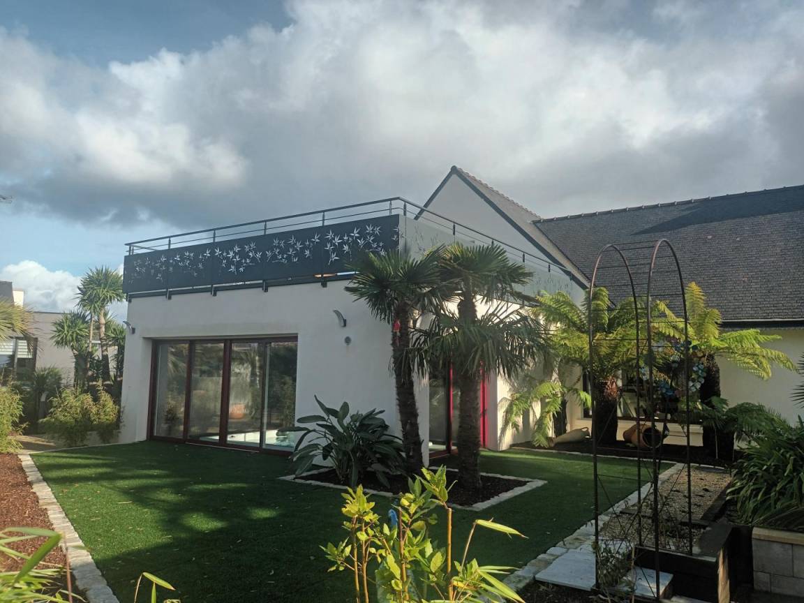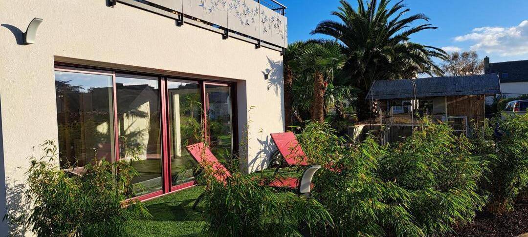 „Dès l'arrivée, le jardin bordé de palmiers vous donne une ambiance tropicale (malgré un ciel gris de décembre). Les hôtes sont prévenants et d'une gentillesse chaleureuse. Ils ont pensé à chaque détail (décoration, fonctionnalité, confort...) pour que le séjour soit agréable. Le spa se trouve dans une annexe jouxtant l’appartement de plein pied. Le spa est équipé d'une toilette, une douche, d'un sauna finlandais, chauffage au sol et mention spéciale pour le grand jacuzzi de nage. Des grandes baies vitrées s'ouvrent sur le jardin. Des volets électriques garantissent votre intimité. Le gîte est situé dans une impasse d’où calme et peu de circulation. Le bourg de Penvénan est facilement accessible à pied où vous trouverez différents commerces dont une boulangerie offrant des produits d'une qualité exceptionnelle. En résumé: Un séjour de rêve. Nous y retournerons!“