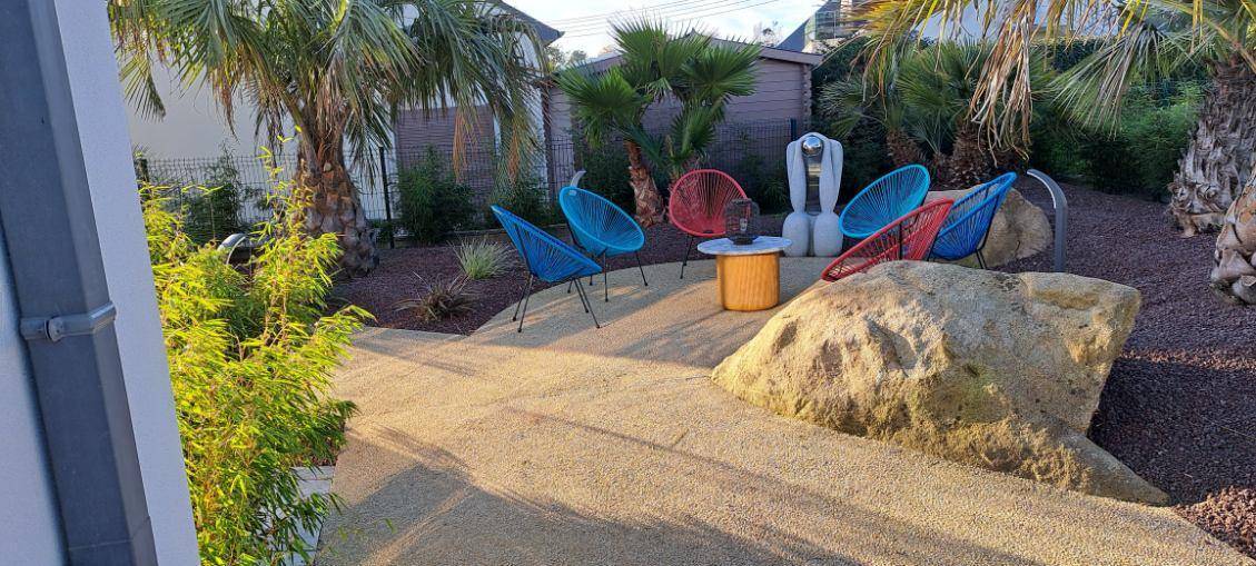 „Dès qu’on pousse le portail, on découvre un charmant jardinet à l’ambiance exotique qui invite immédiatement au dépaysement. Joëlle et Michel nous réservent un accueil aussi chaleureux que convivial (un grand merci pour l’emplacement prévu pour la remorque !).À notre arrivée, on plonge tout de suite dans l’atmosphère bretonne avec un délicieux far breton fait maison par Joëlle, accompagné d’une bouteille de cidre. À l’intérieur, tout est impeccable: Propre, bien agencé, et rien ne manque. Le vrai atout du lieu, c’est la superbe salle de spa et sauna mise à disposition. Quel bonheur de se détendre dans le spa après une belle journée de balade !Une adresse idéalement située, que nous recommandons les yeux fermés à 100 %.“