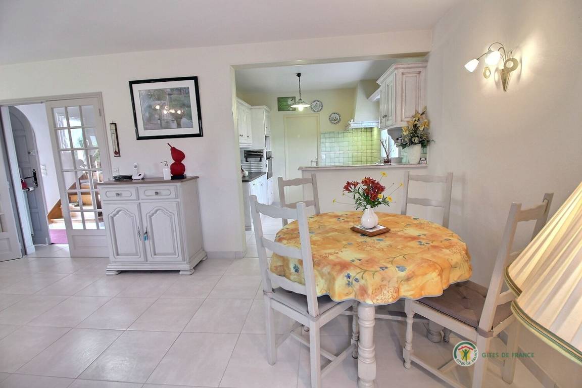 Dieses Ferienhausangebot enthält: Im Erdgeschoss: großes Ess-und Wohnbereich, zur Einbauküche geöffnet. 1 Schlafzimmer (1 Bett 2 Pers 140x190), Dusch-Badezimmer, WC. Im 1. Stockwerk: 3 Schlafzimmer (2 Betten 140x190, 2 Betten 80x200), Badezimmer mit Badewanne, WC. DVD-Player. Hochstuhl und Baby-Bett vorhanden. Wi-Fi-Internetzugang. Angenehme Veranda von 20 qm, Terrasse, ausgedehntes eigenes Landschaftsgrundstück von 2500 m². Die Landstraße D74 ist 80 Meter abseits.